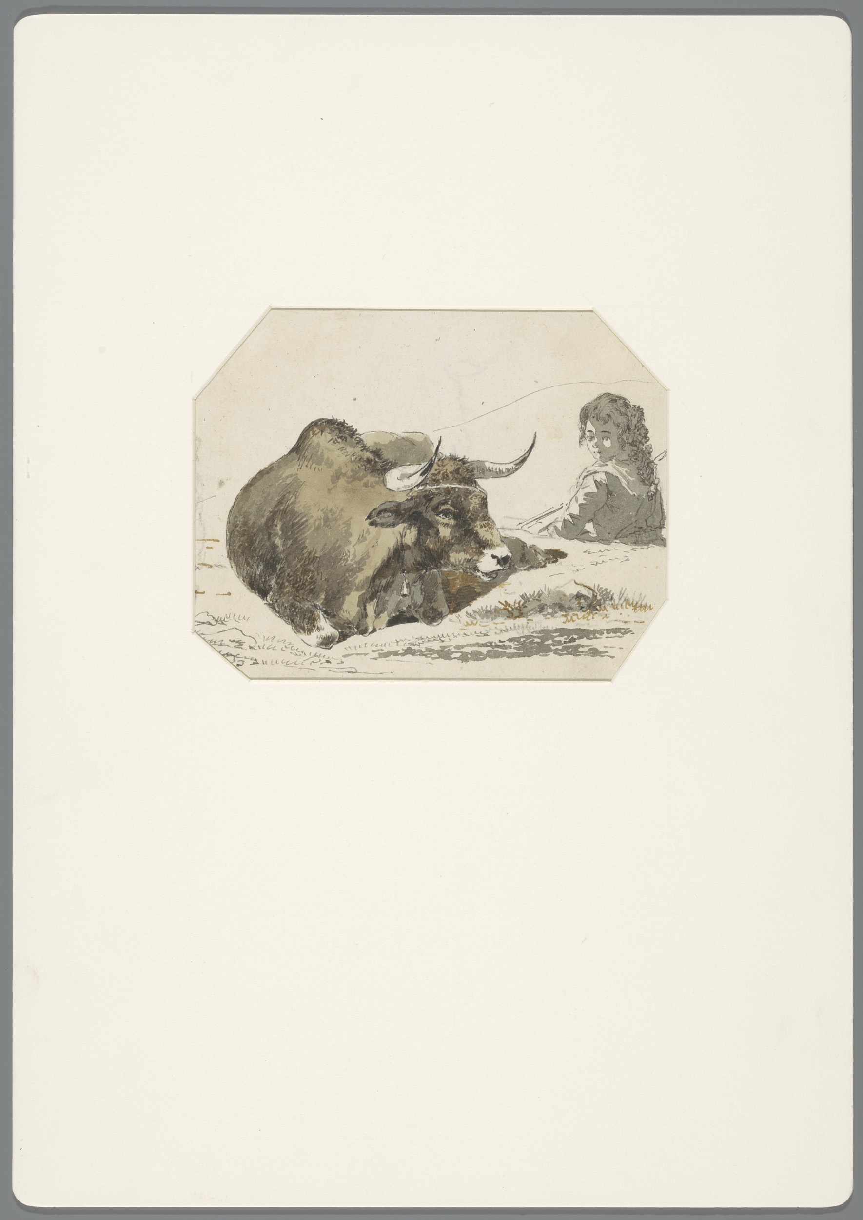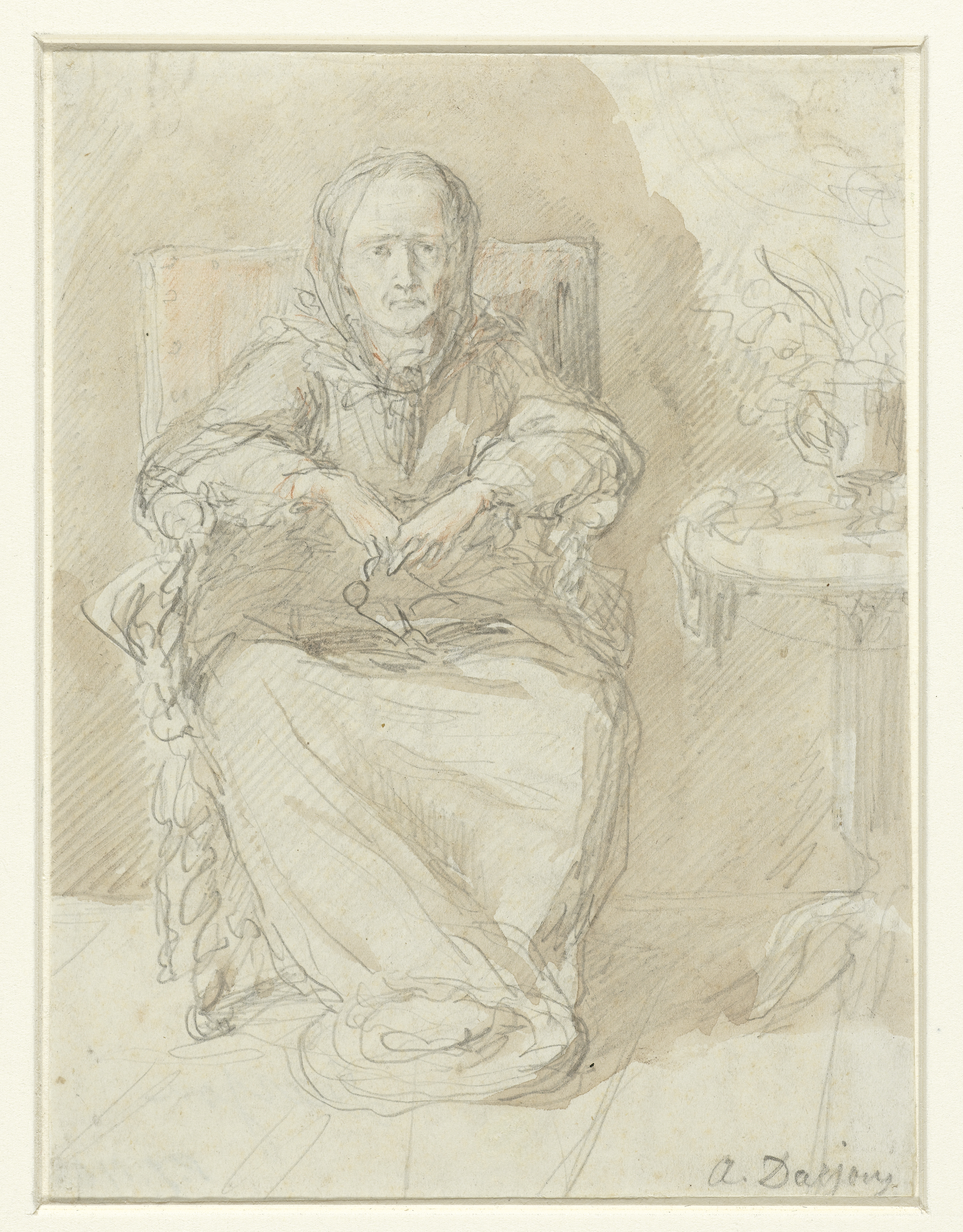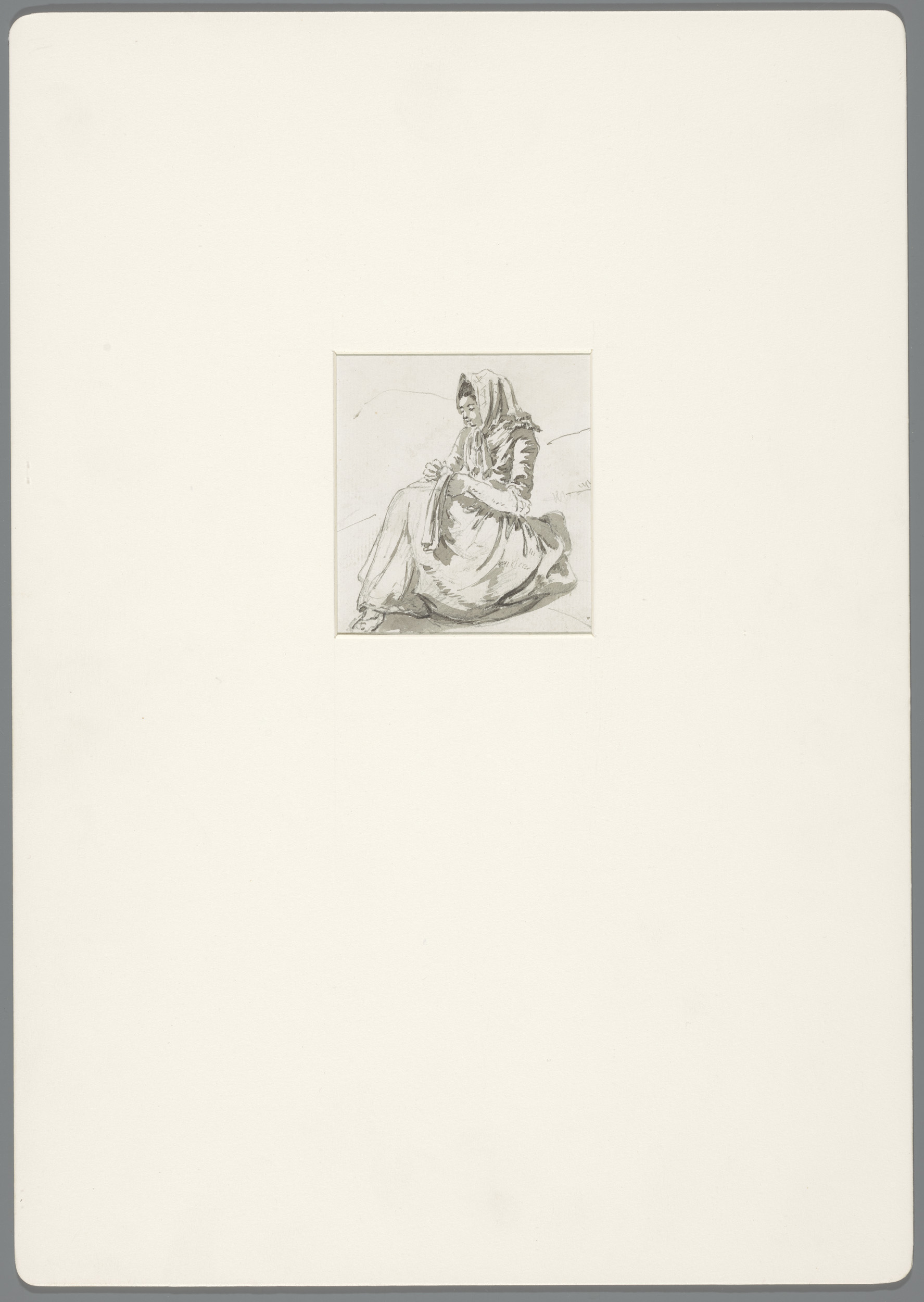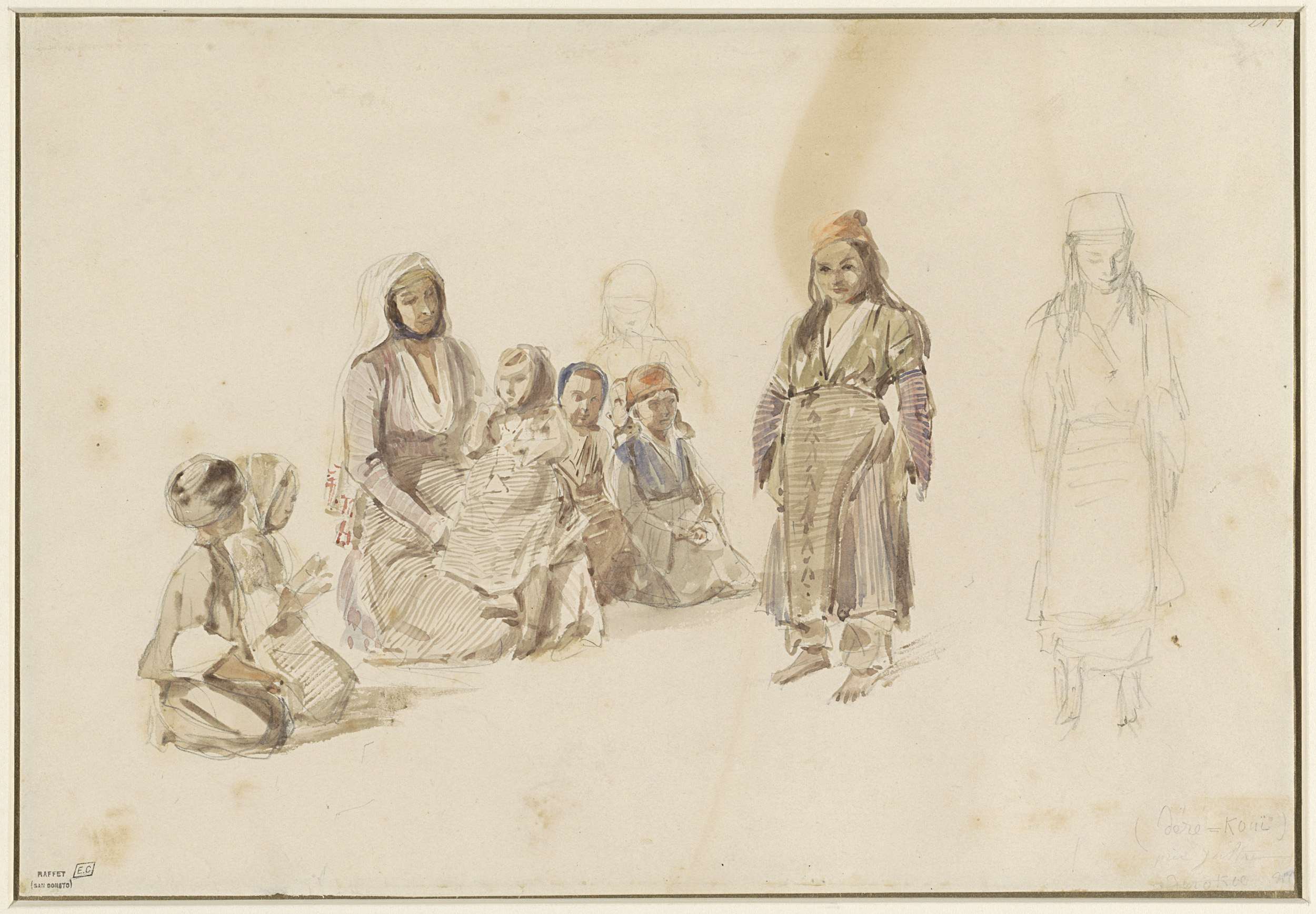 Studieblad met zittende vrouw en kinderen, te Derekö...