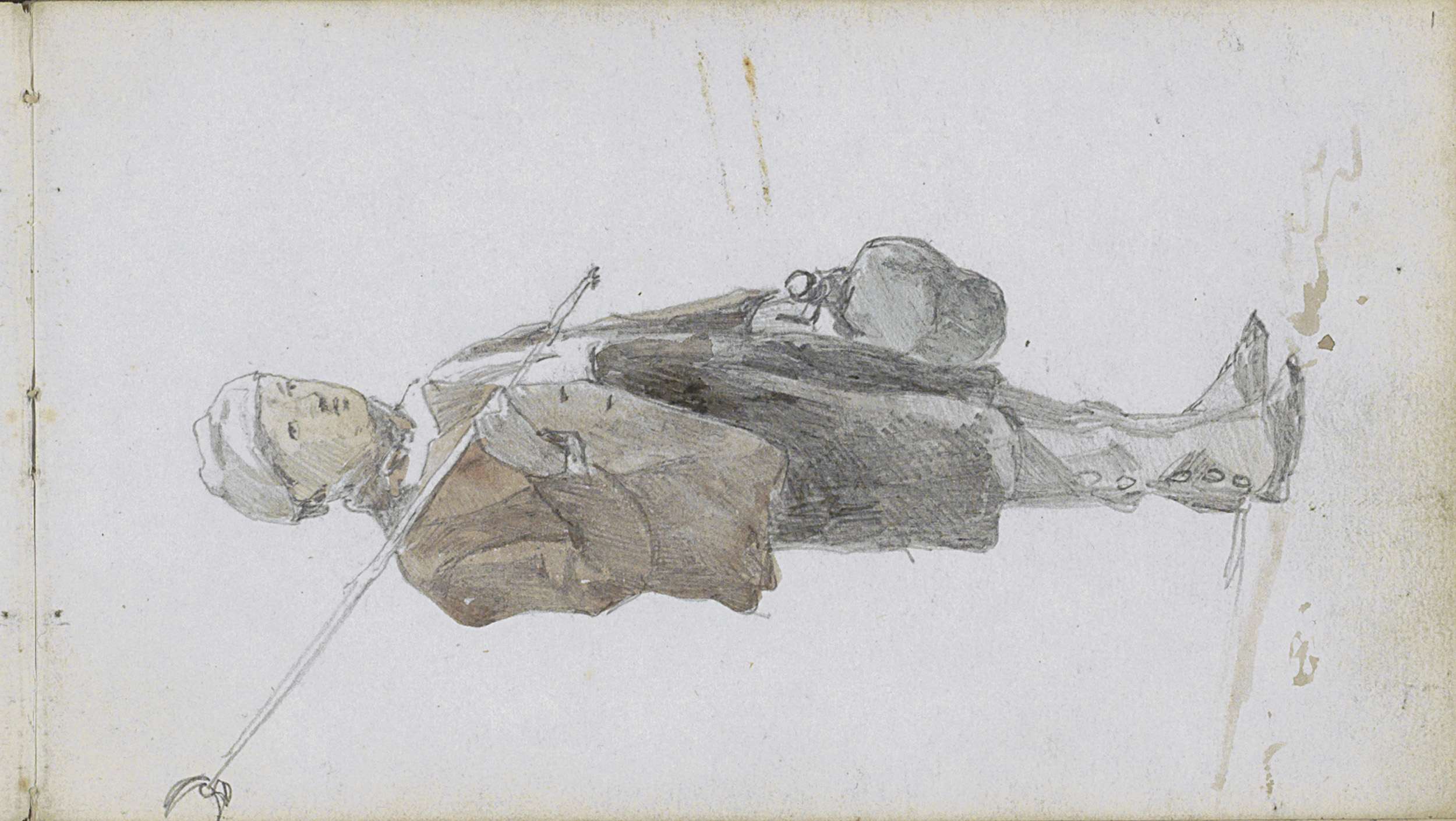Staande man met een hoed en wandelstok