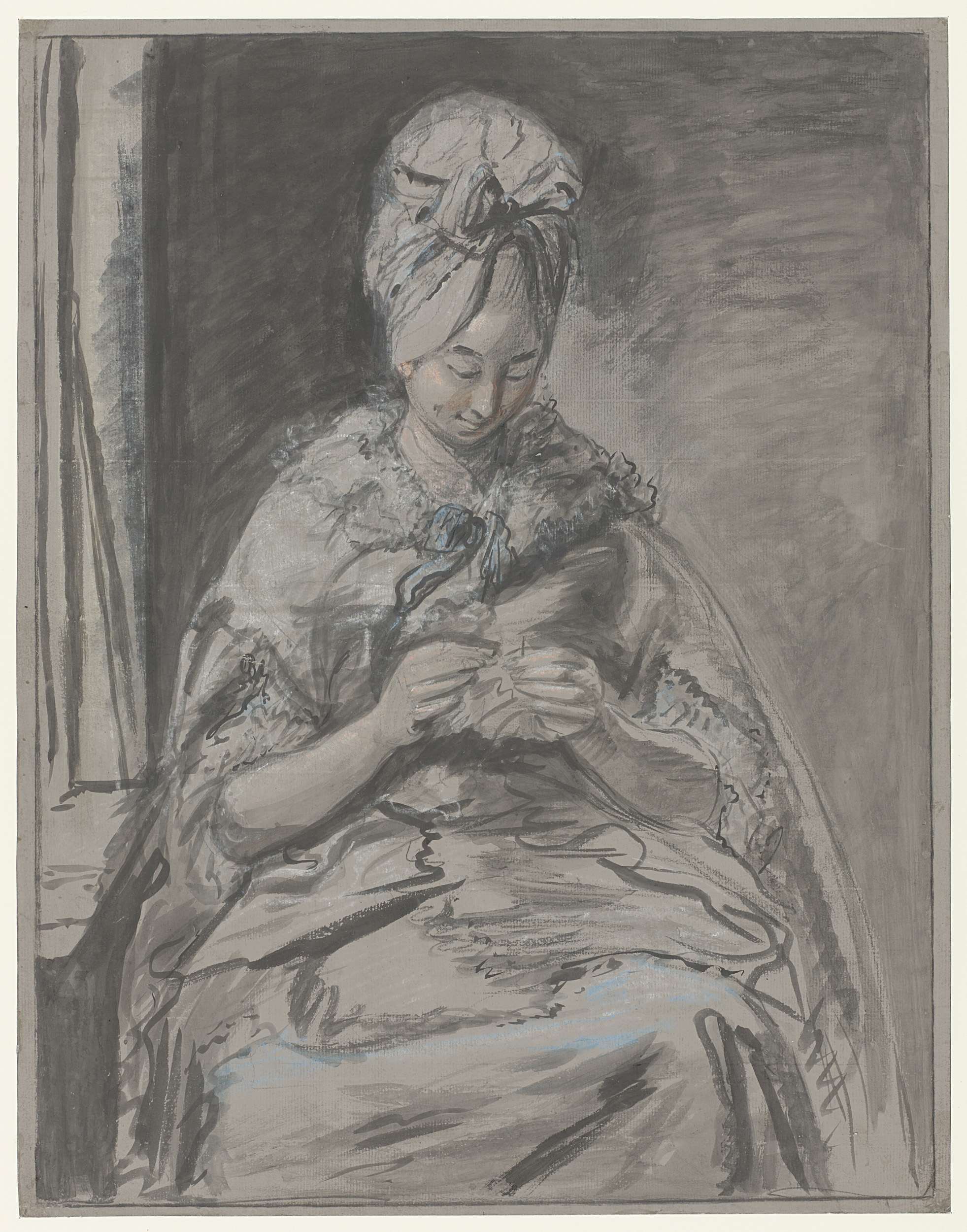 Zittende dame met hoge pruik