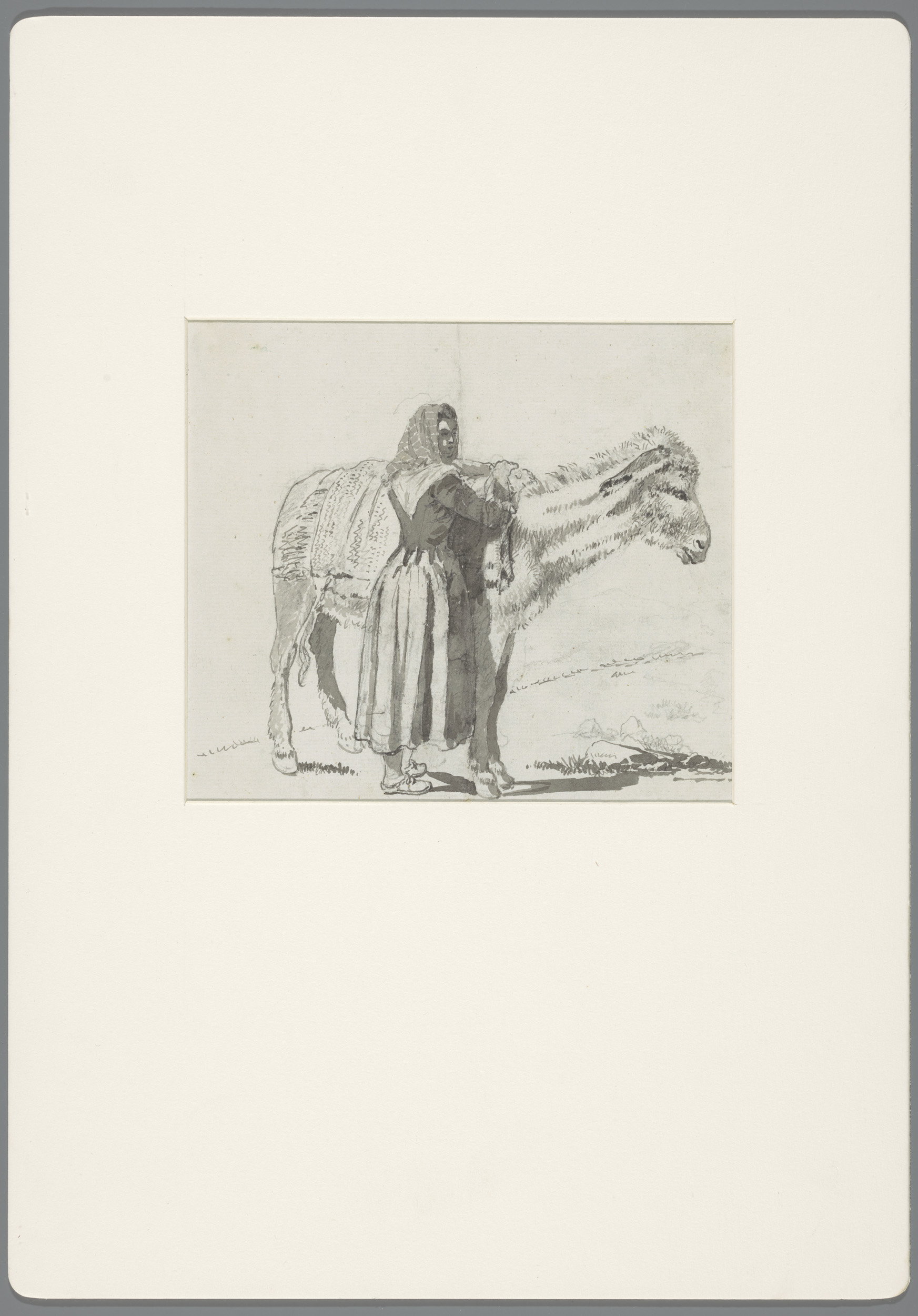 Vrouw met een mand op een ezel