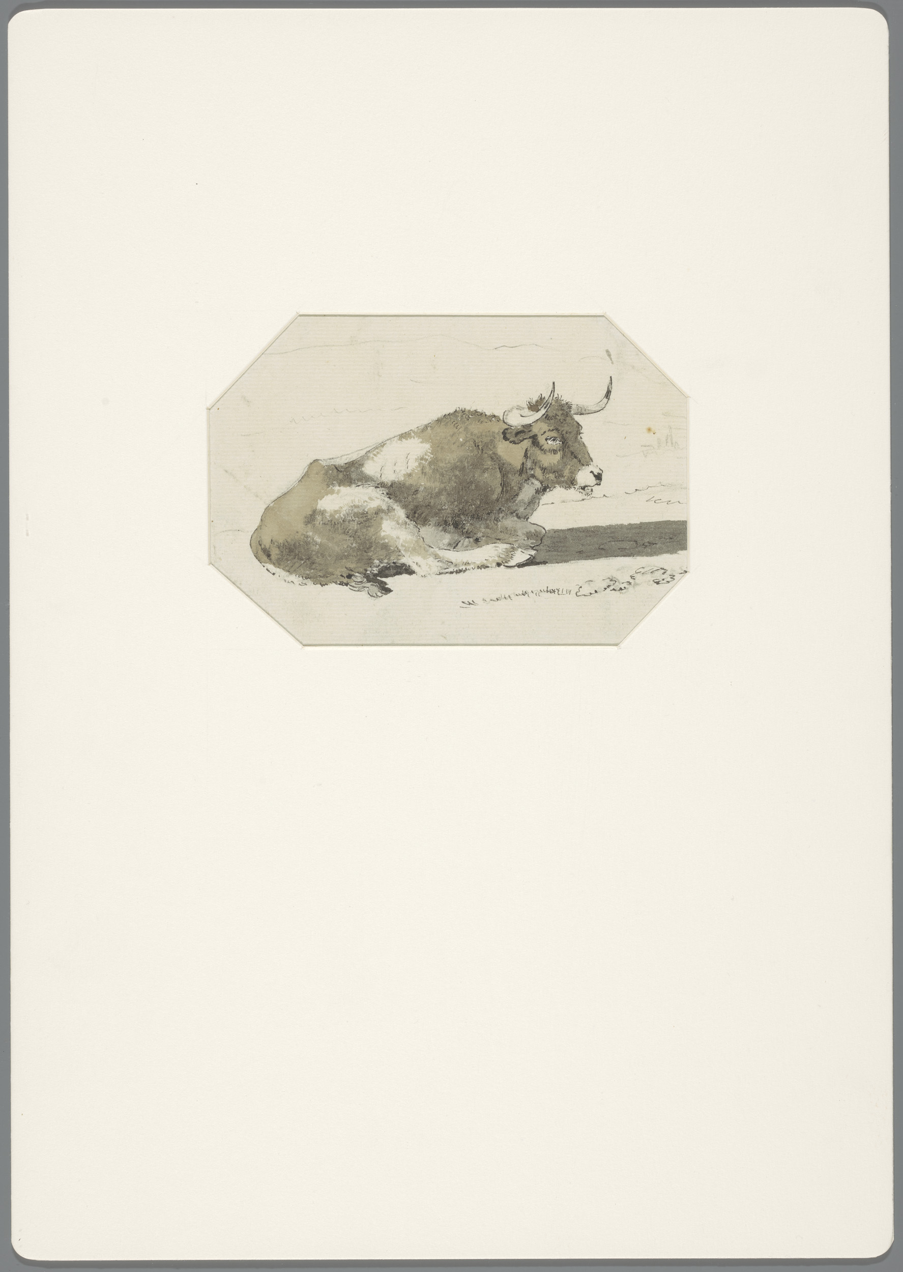 Schetsblad met twee geiten en drie rammen