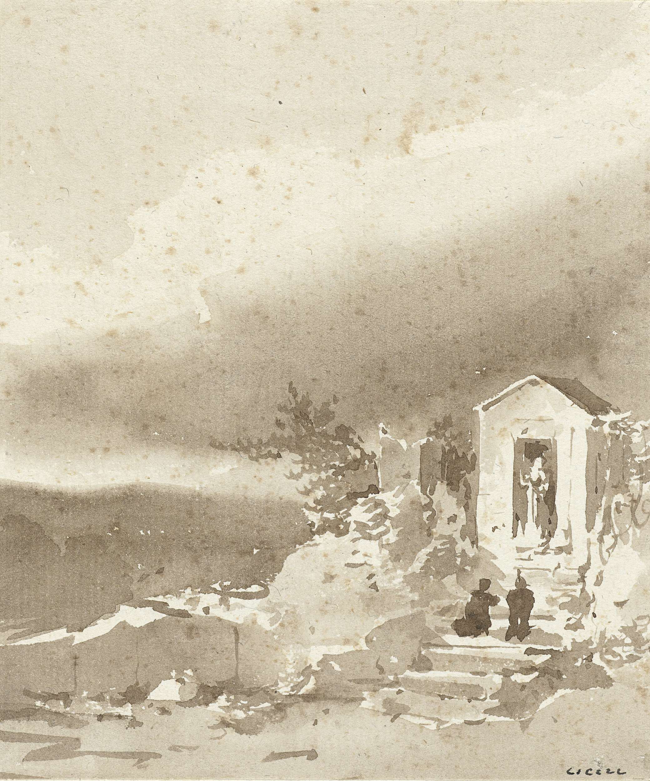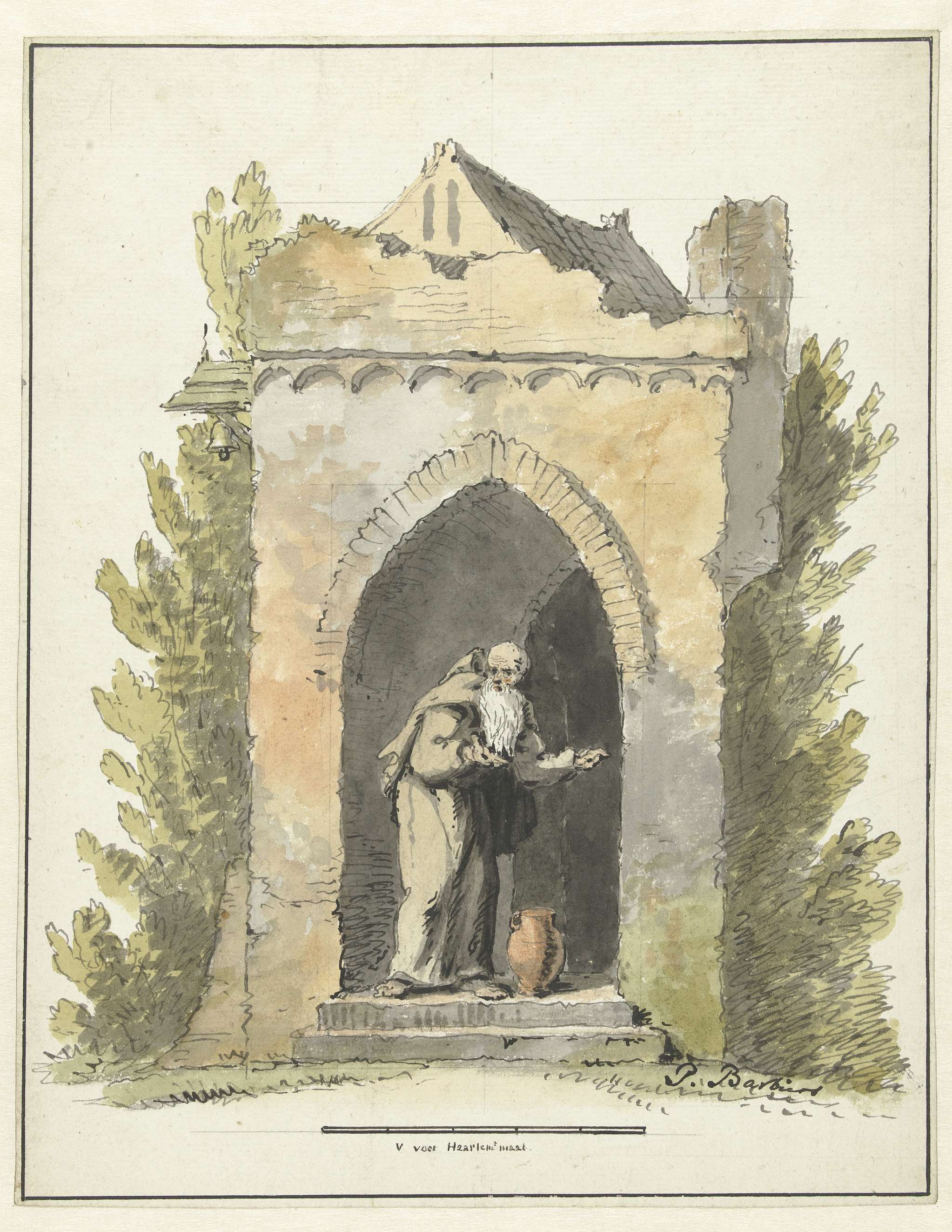 Kluizenaar voor een stenen kapel