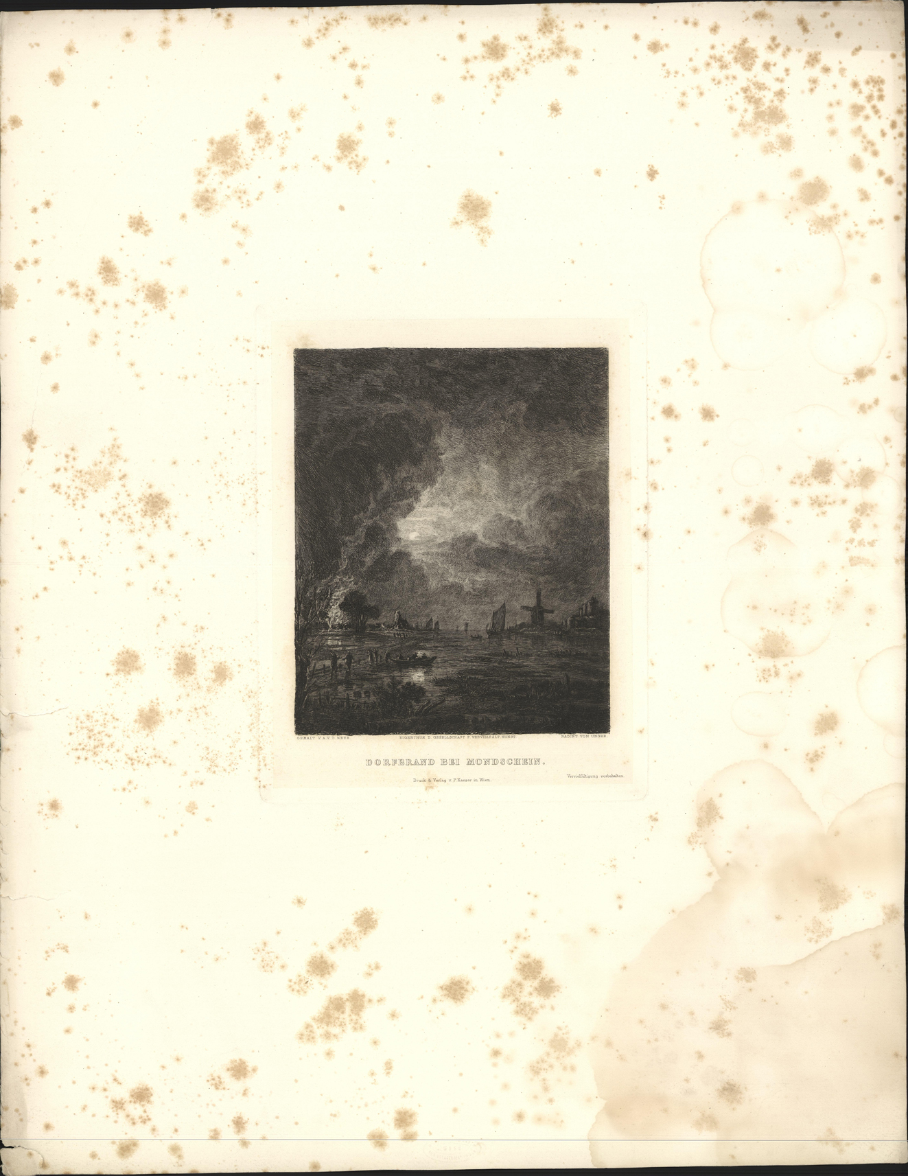 Dorfbrand bei Mondschein.