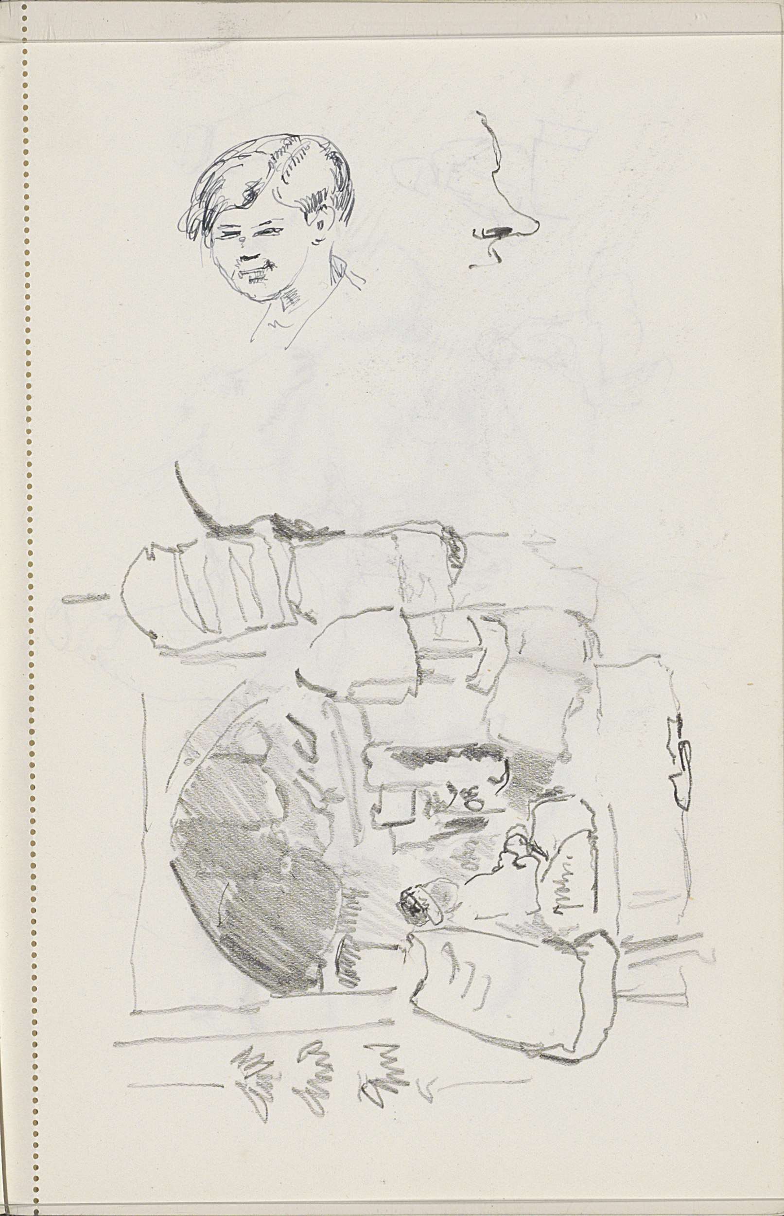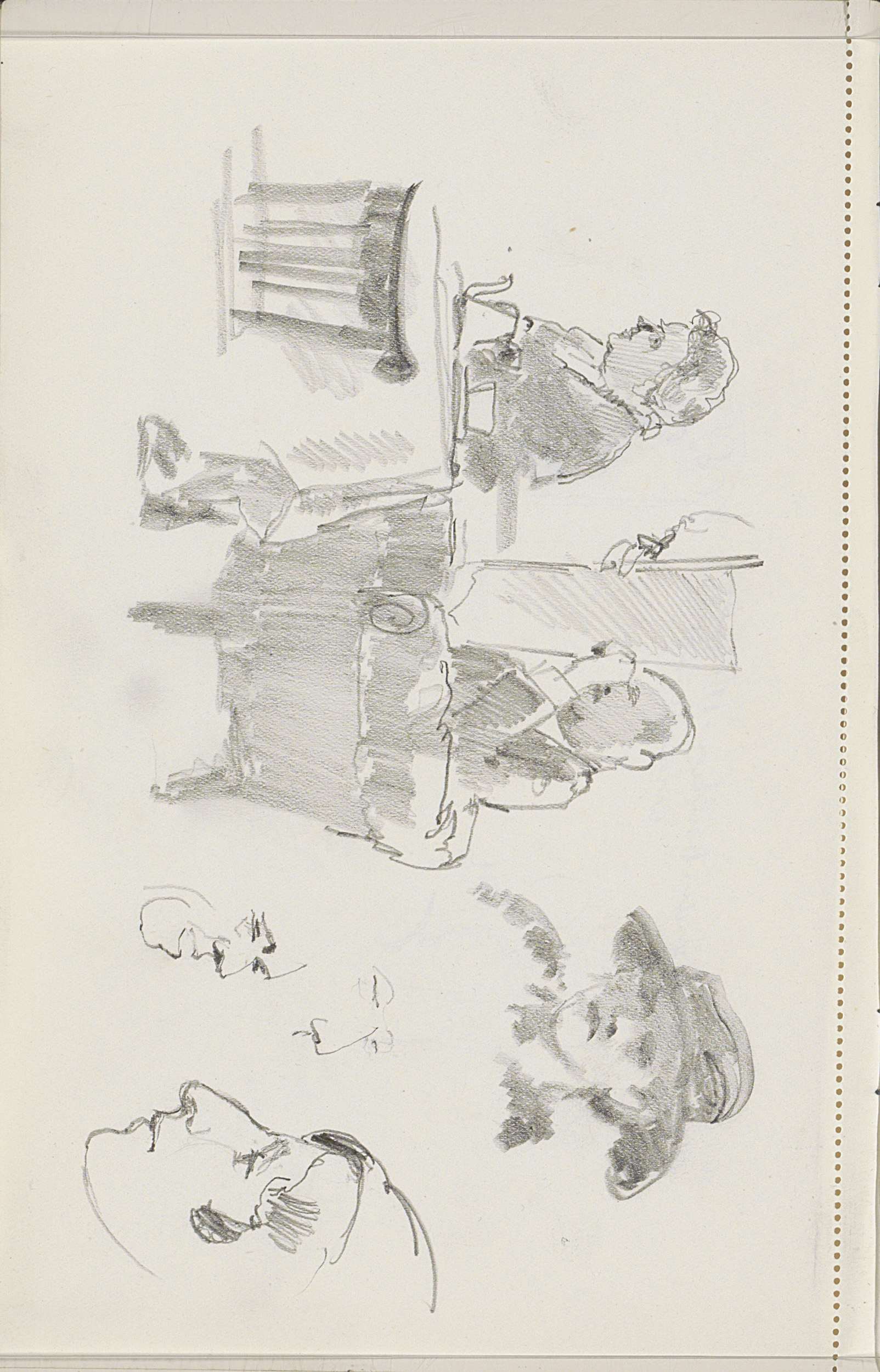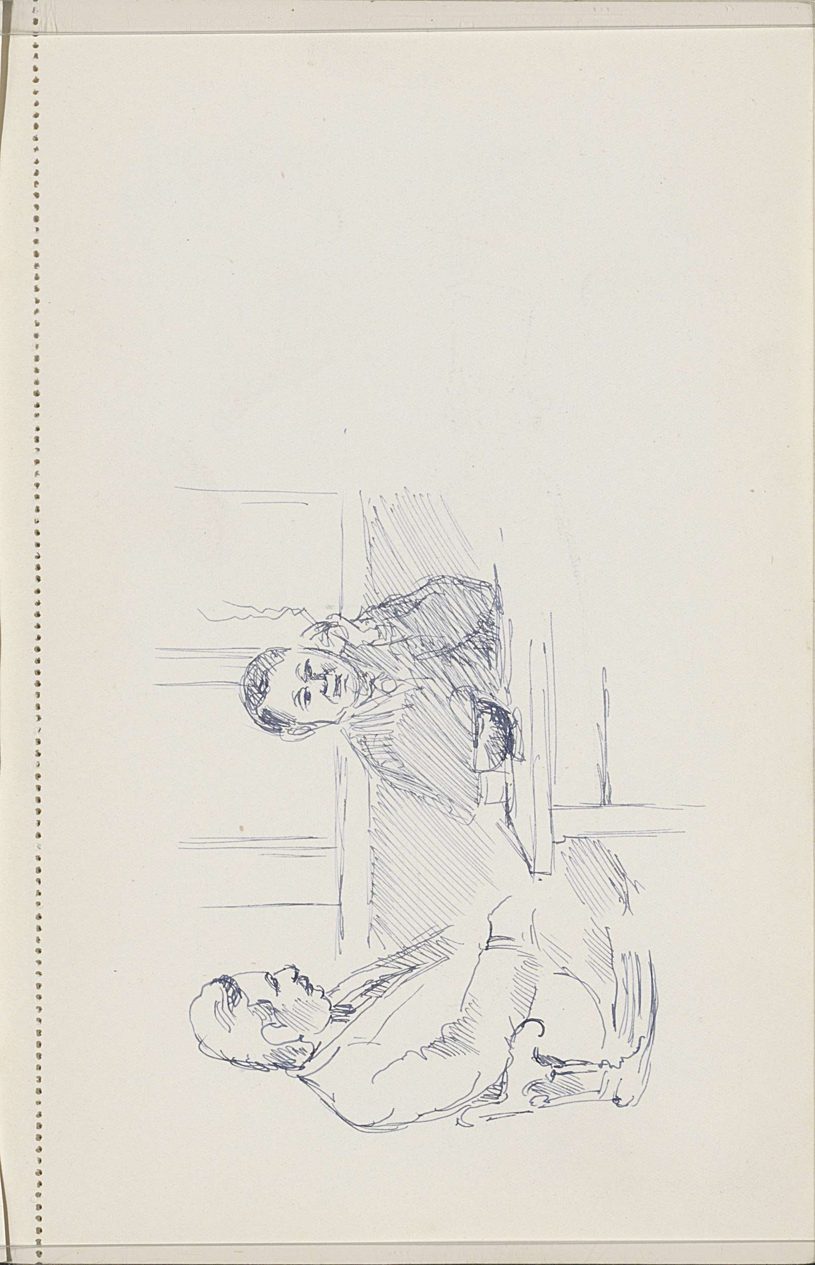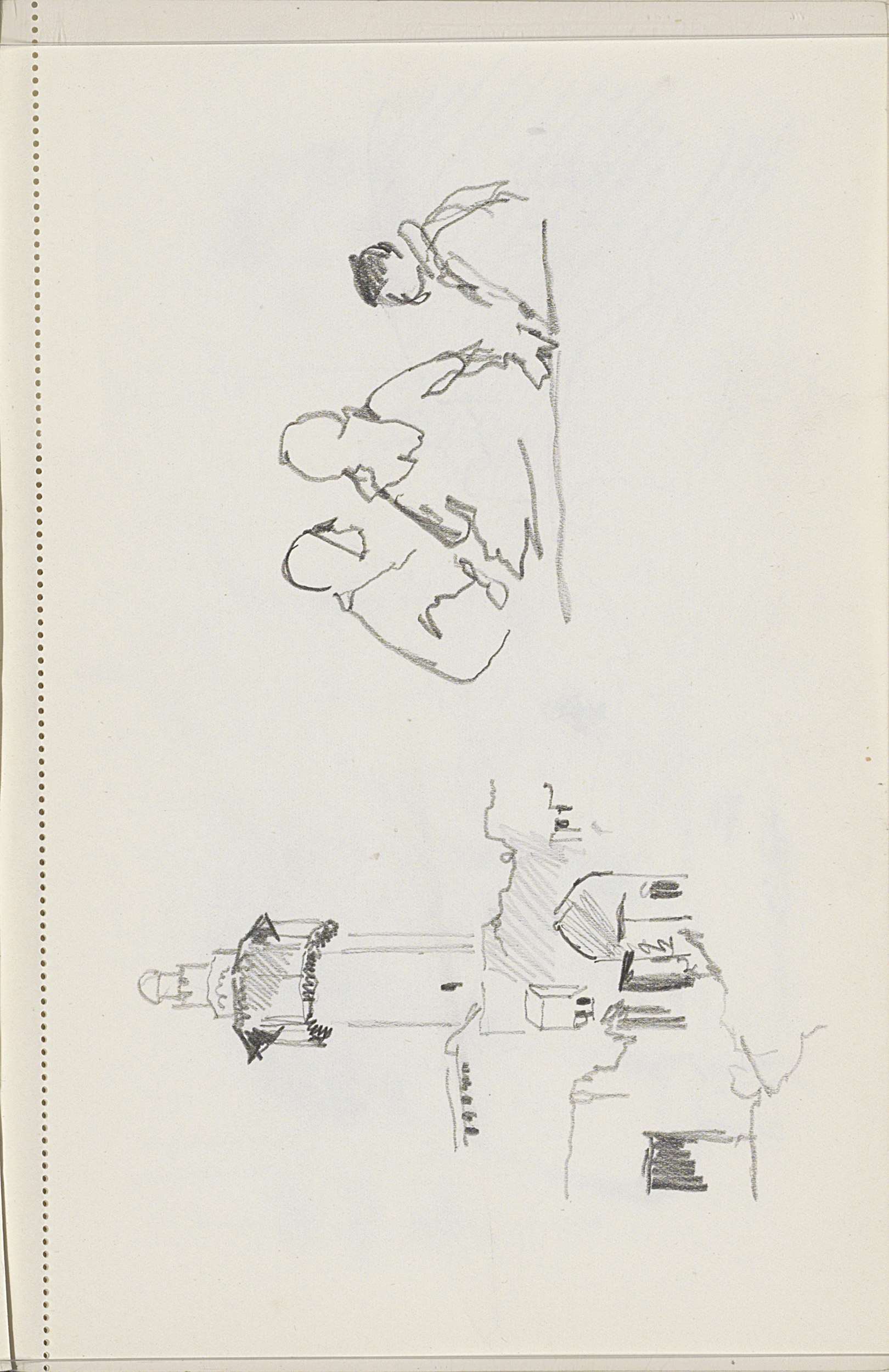 Studieblad, onder andere met een man in een leunstoel