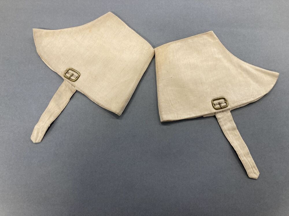 Paar souspieds van beige keperstof gevoerd met wit k...