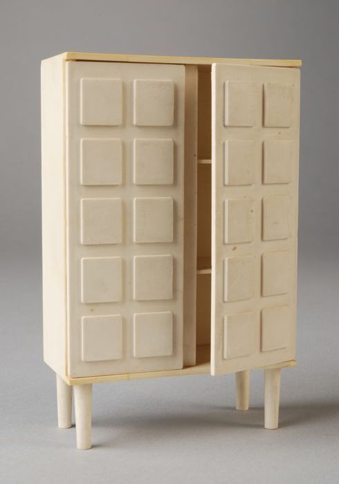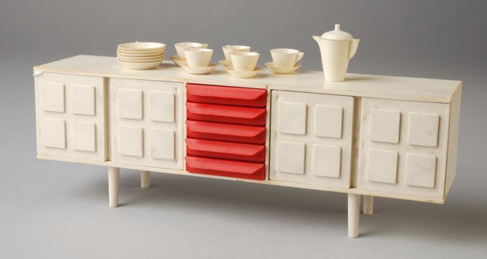 Wit plastic dressoir, met serviesgoed, onderdeel van...