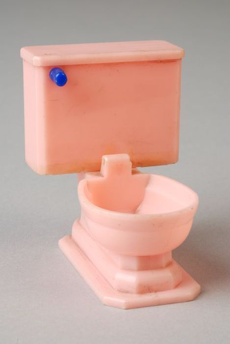 Roze toiletblok met verlaagde stortbak, onderdeel va...