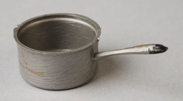 Grijze, plastic steelpan, keukengoed van poppenhuis ...