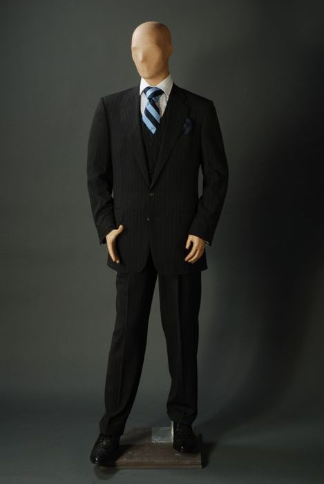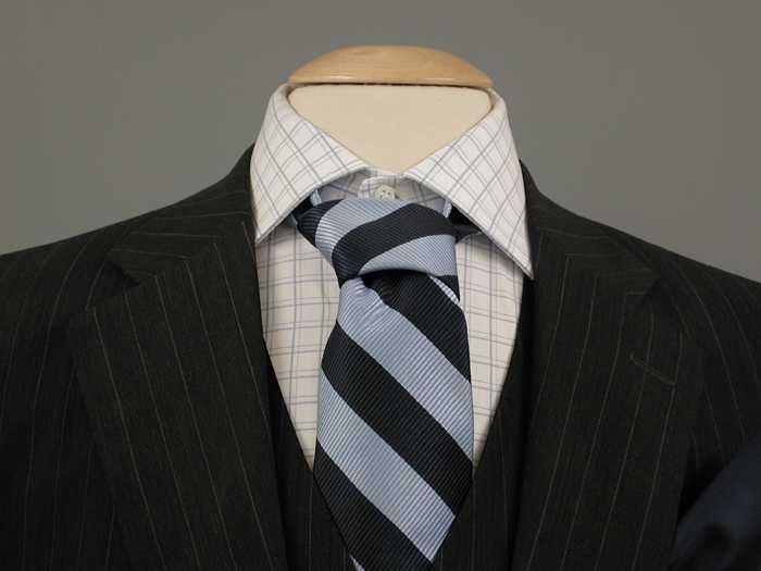 Driedelig kostuum, antraciet met lichte grijze stree...
