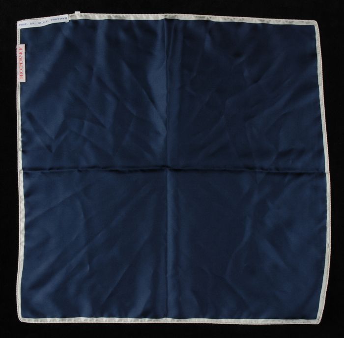 Pochet van donkerblauw zijde met smal wit randje, "P...