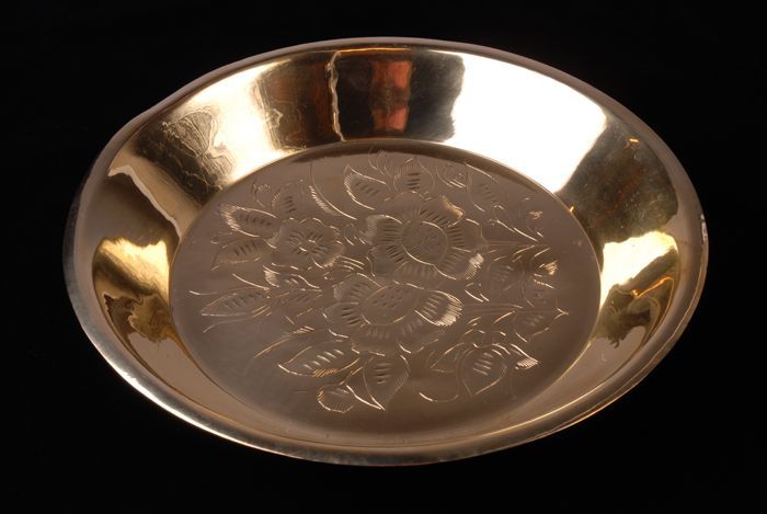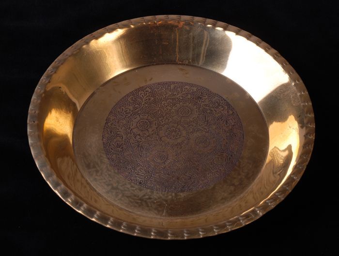 Koperen schaal of dienblad, gebruikt bij Hindoeïstis...
