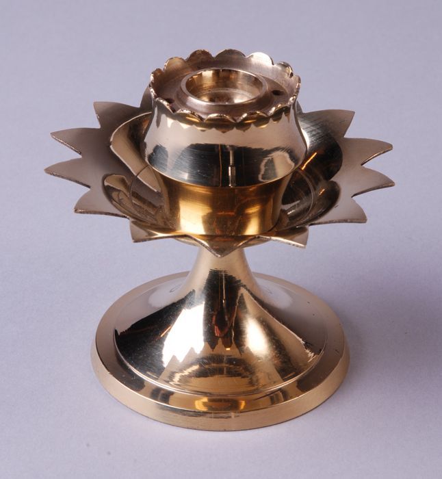Koperen wierookhouder, bloemvormig, gebruikt bij Hin...
