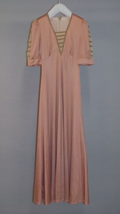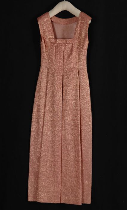 Enkellange rechte mouwloze avondjapon van zalmroze k...