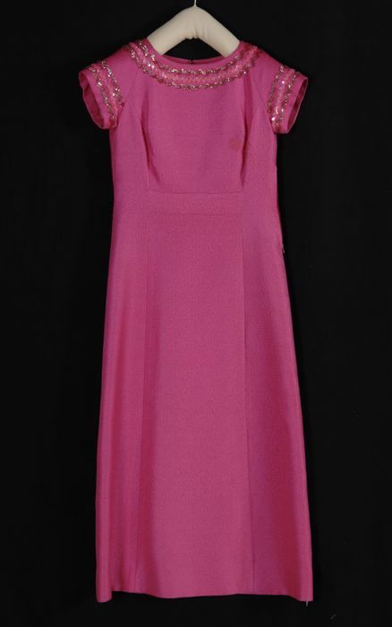 Enkellange rechte avondjapon met korte mouw, cyclaam...