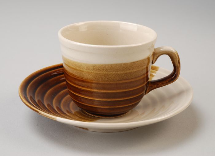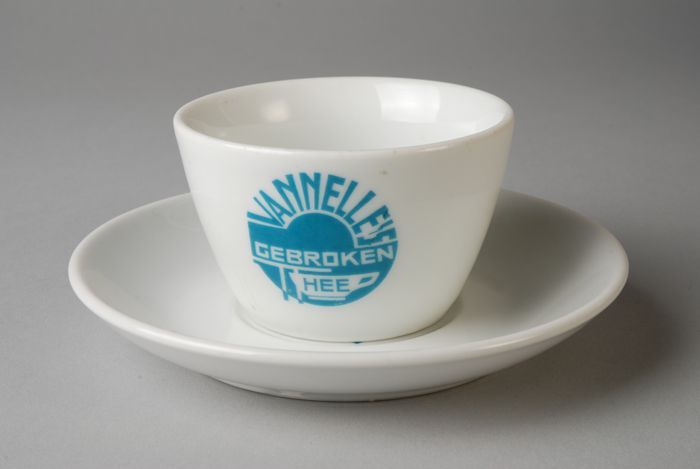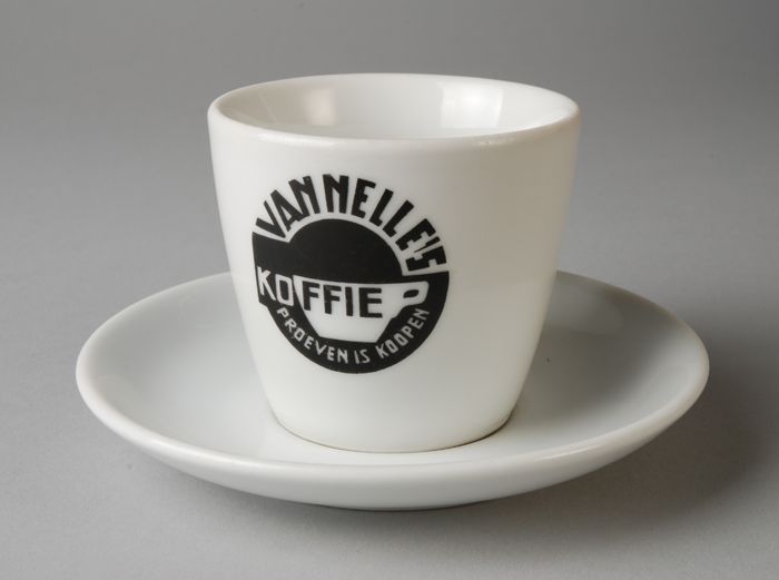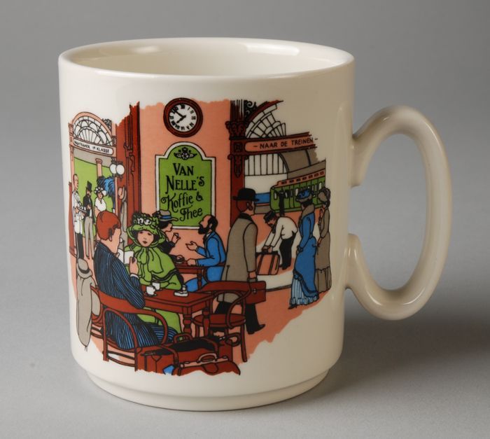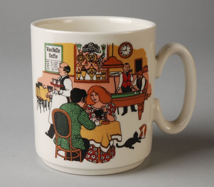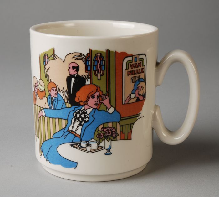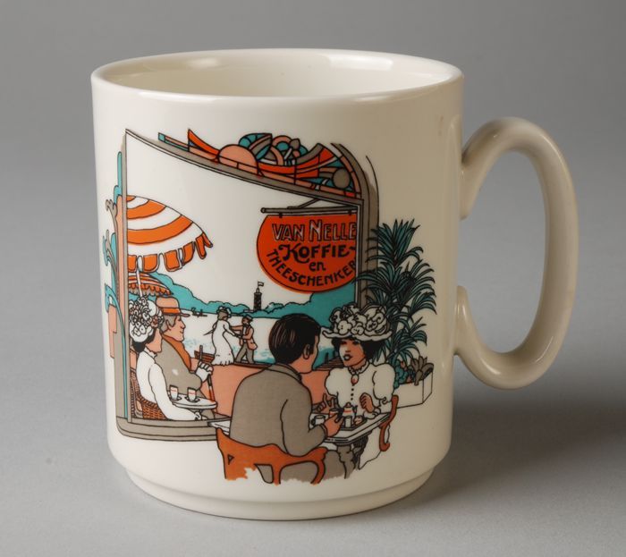 Beker uit een serie van Van Nelle met interieur café...