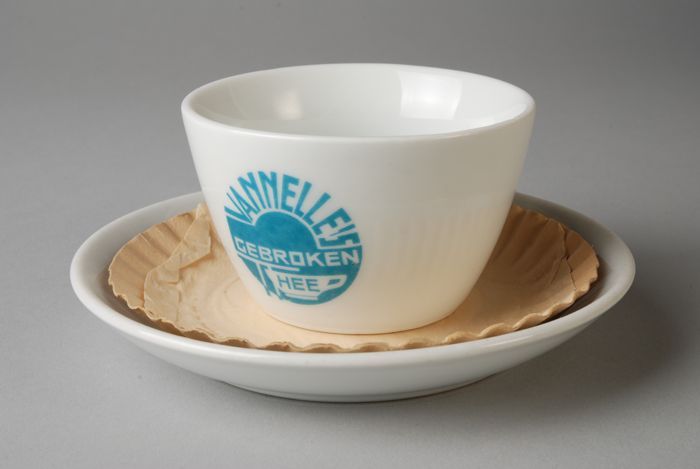 Kop en schotel met blauwe opdruk Van Nelle´s gebroke...