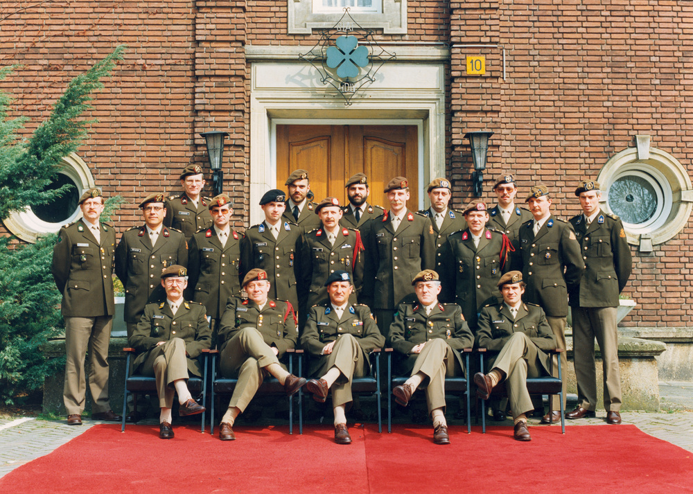 Groepsfoto staf 4 Divisie voor het stafgebouw op de ...