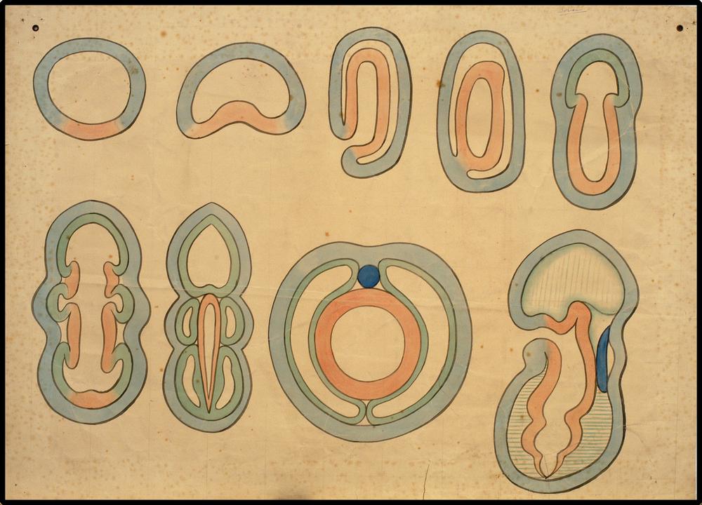 Onderwijsplaat van een stadium in de embryonale ontw...