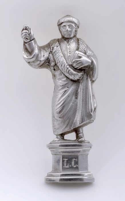 Deel van pen: zilveren afbeelding Laurens Coster "L.C."