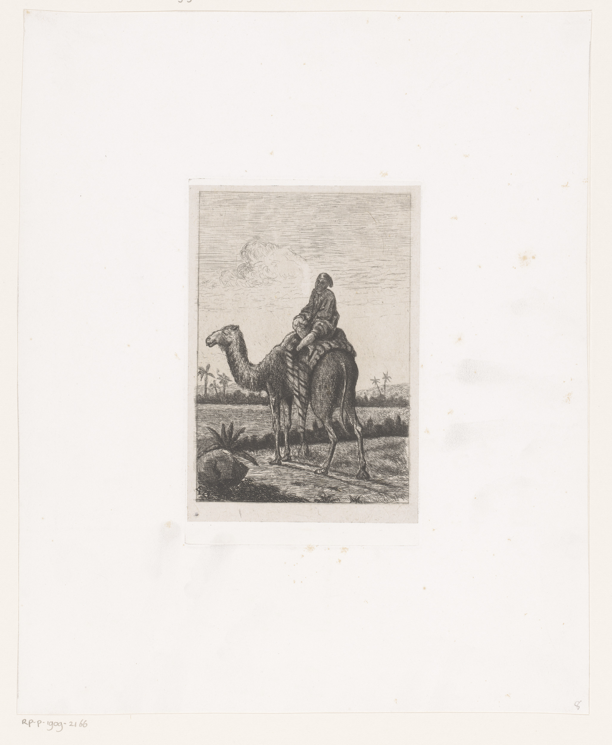 Dromedaris met ruiter in een landschap
