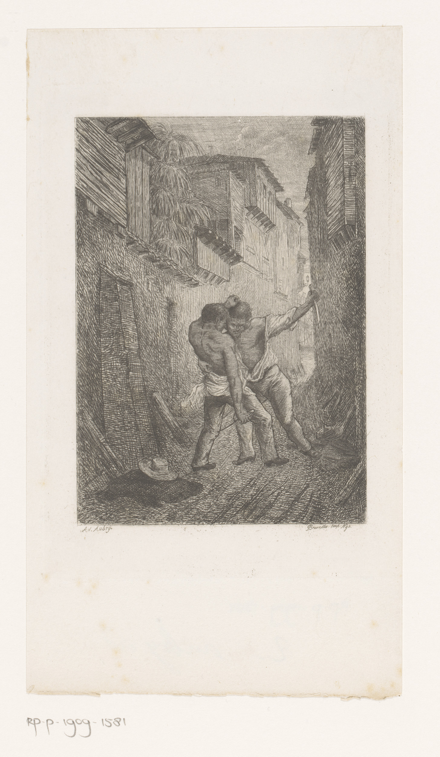 Straatgevecht tussen twee halfnaakte mannen met messen