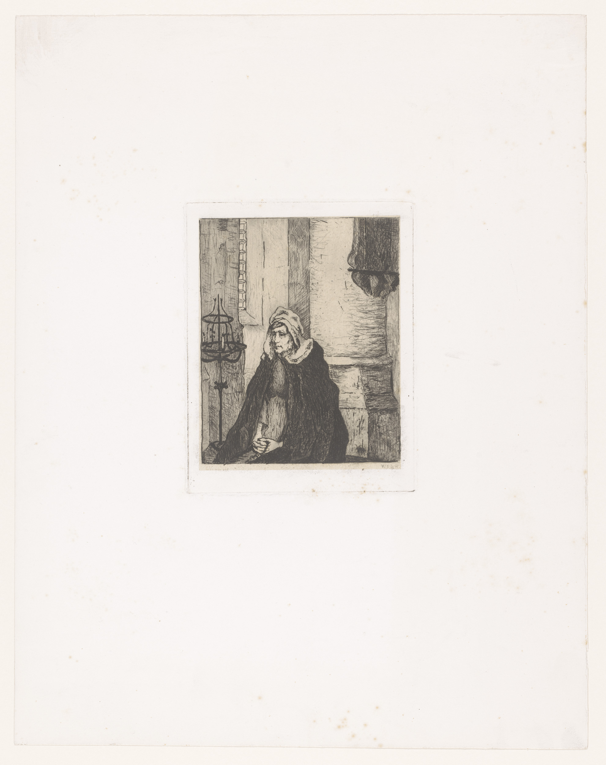 Biddende dame in kerk of kapel