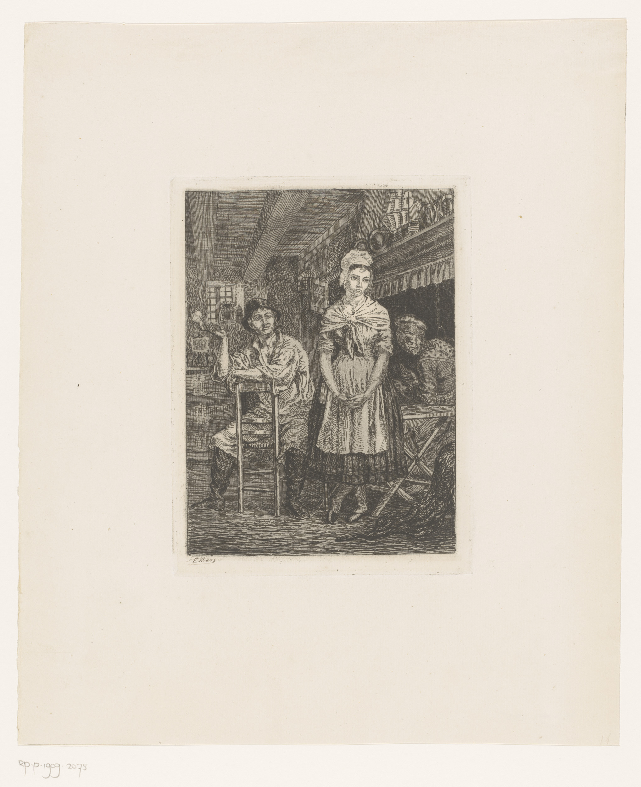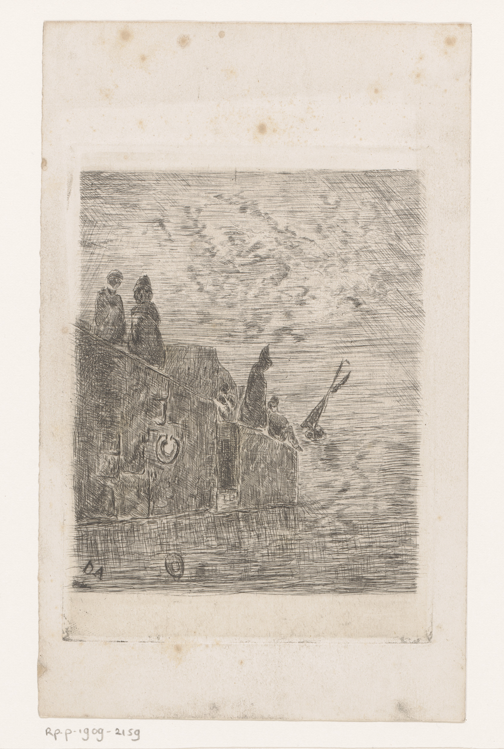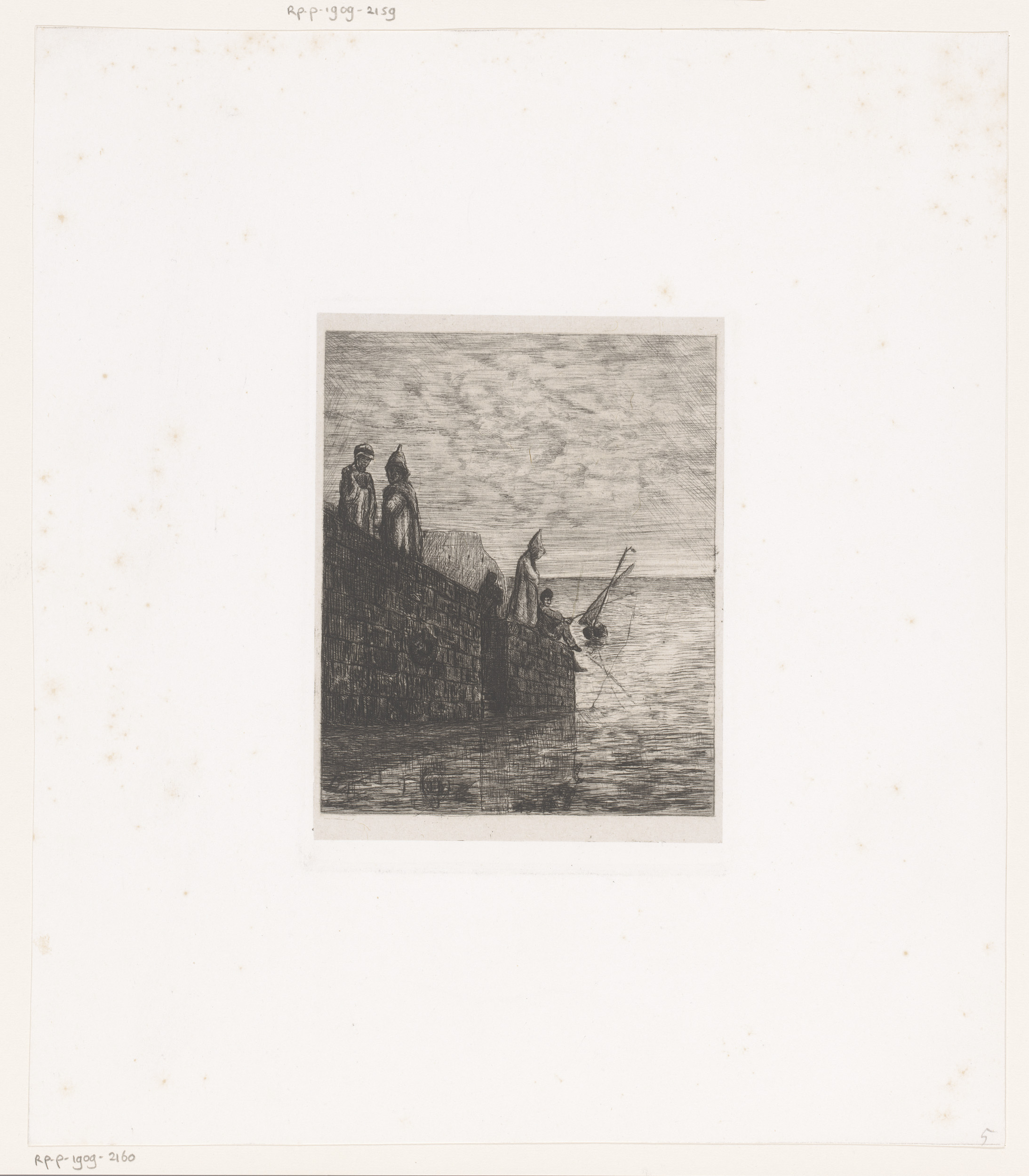 Vissersvrouwen en een jongen kijken bij een kruisbee...