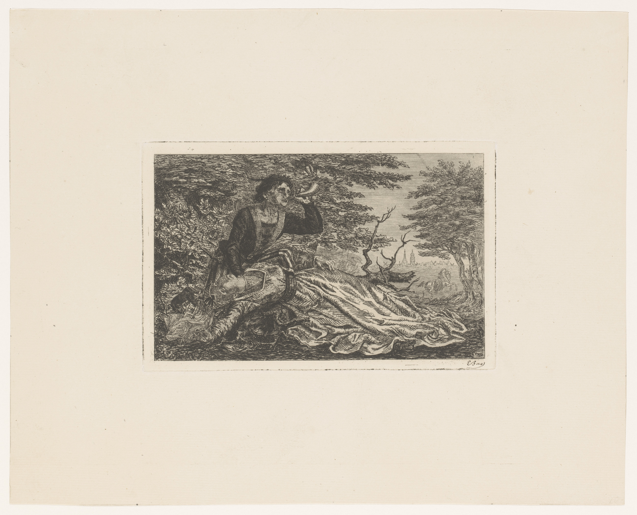 Jonge edelman bij een flauwgevallen jonkvrouw blaast...