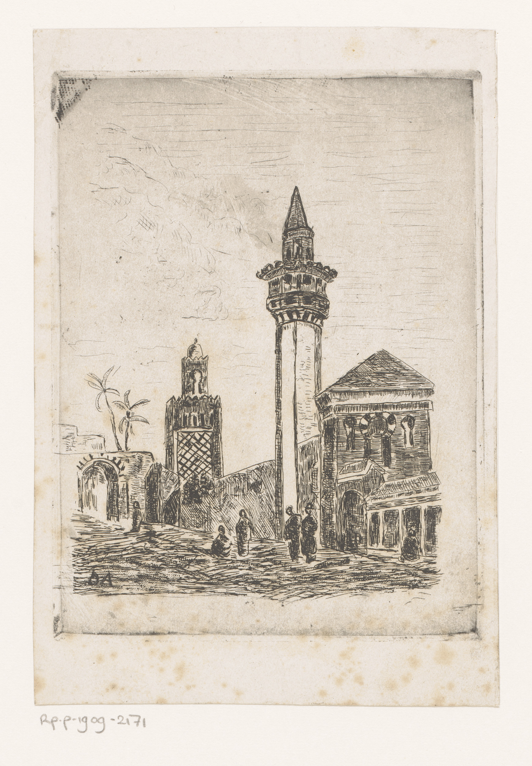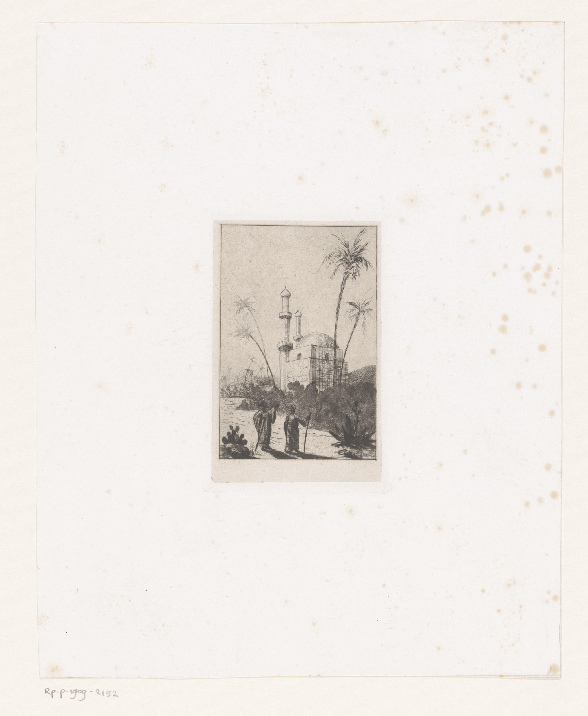Twee wandelaars bij een moskee