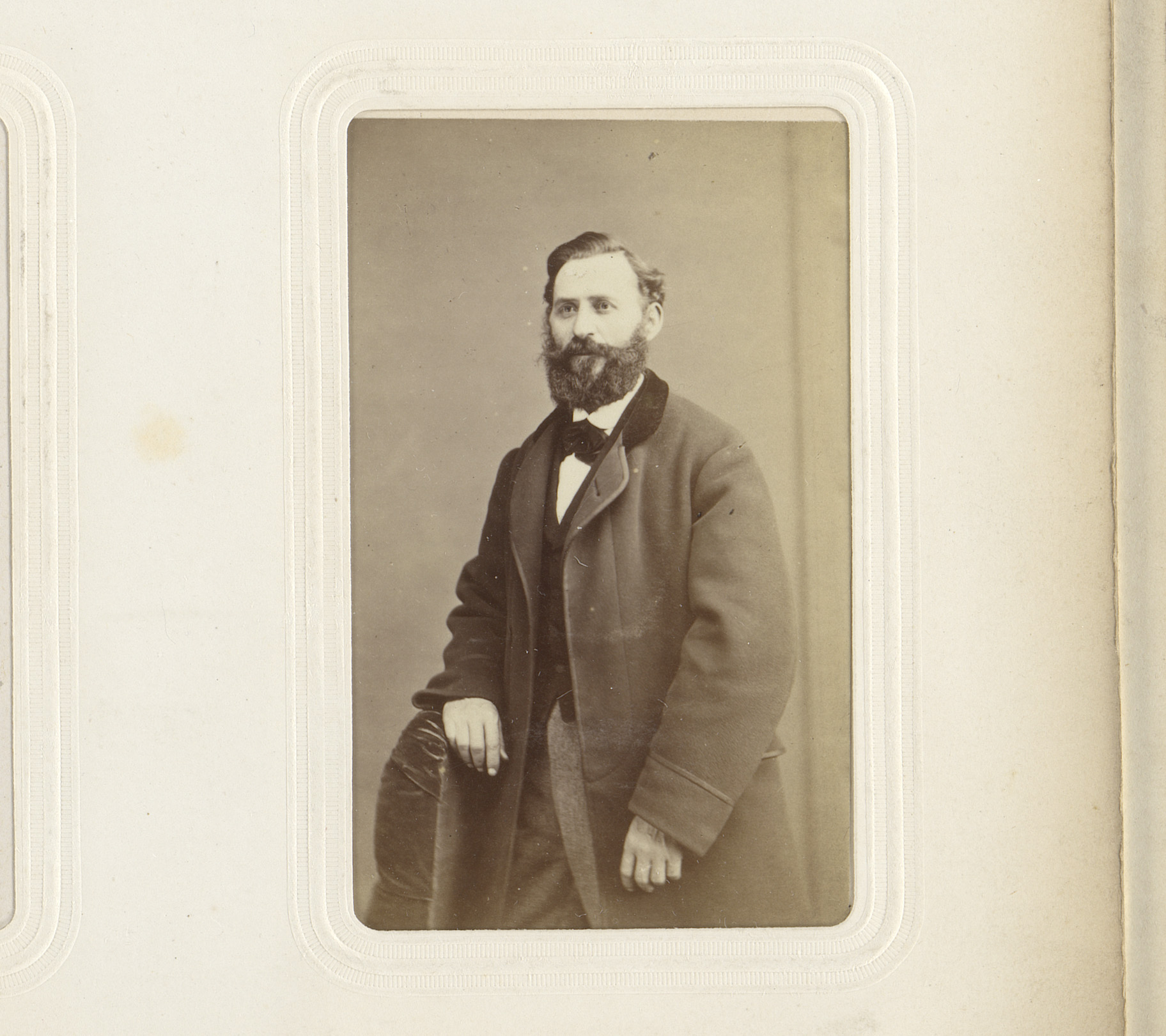 Portret van een zittende man met bakkebaarden en een...