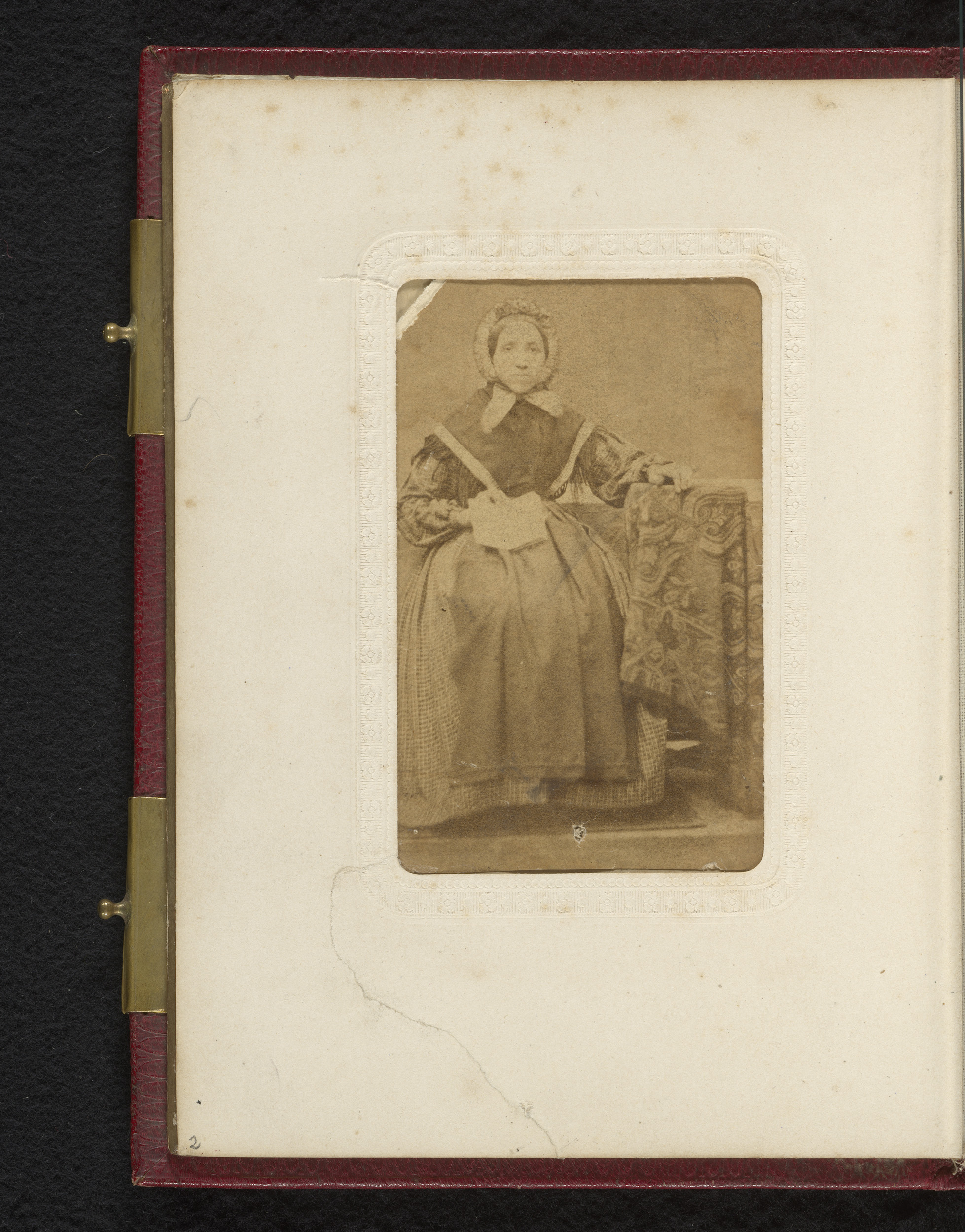 Portret van een vrouw met muts, zittend aan een tafel