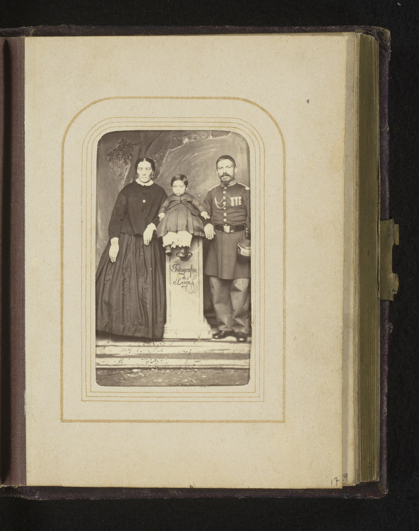 Familieportret met een man in uniform, vrouw en kind