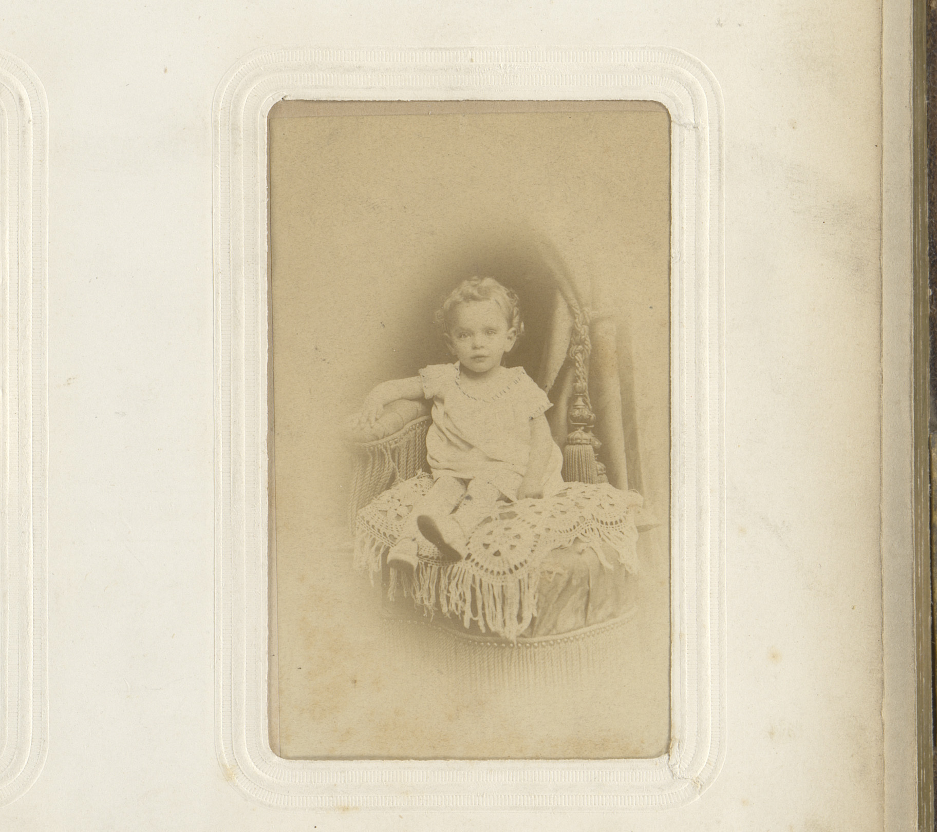 Portret van een kind, zittend op een stoel