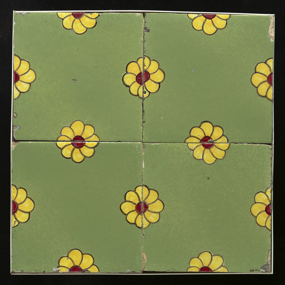 Tegelveld van keramiek, tinglazuur, voorstellende or...