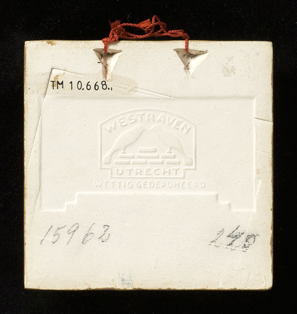 Tegeltableau van keramiek, onderglazuur, getiteld 'O...