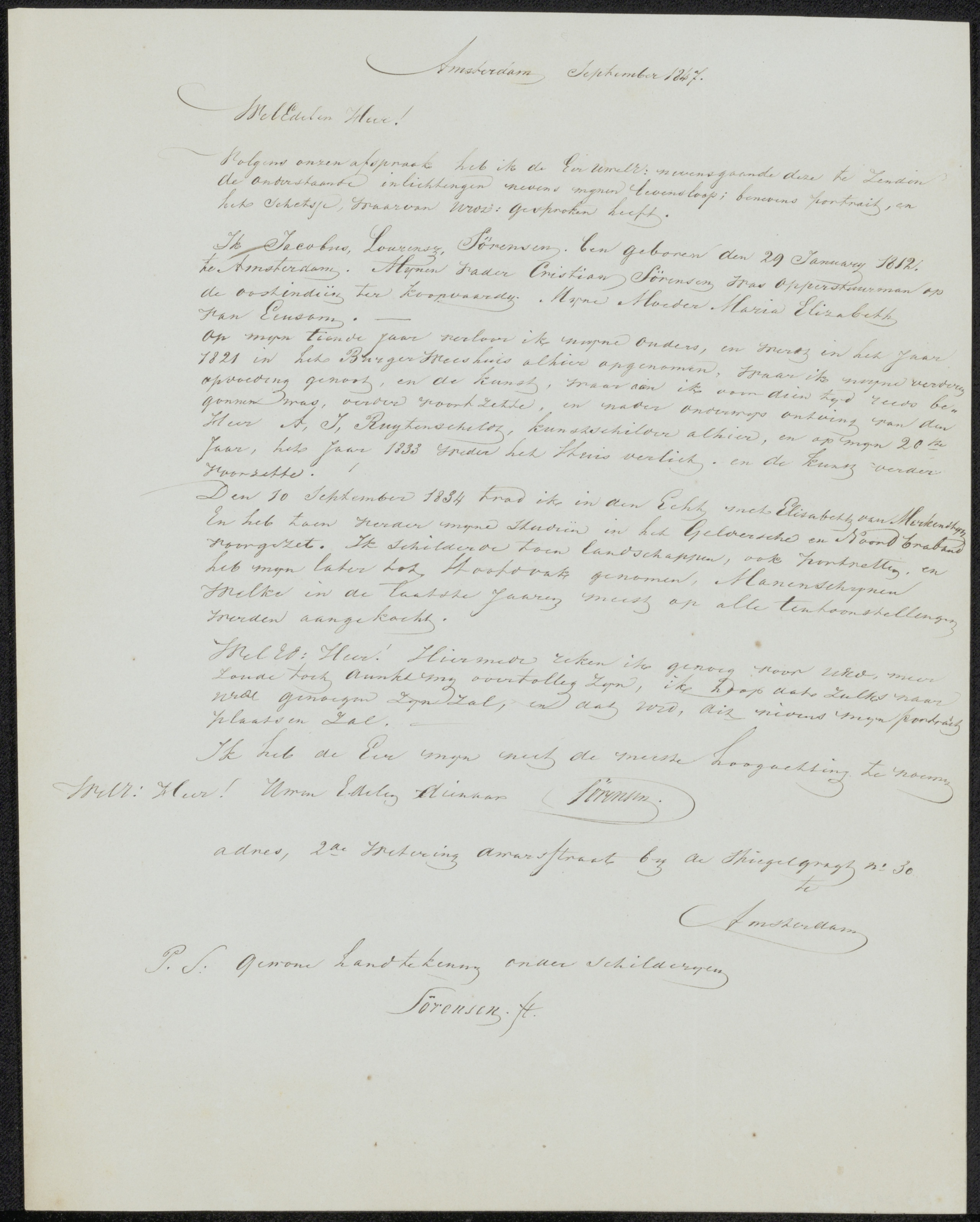 Brief aan Christiaan Immerzeel