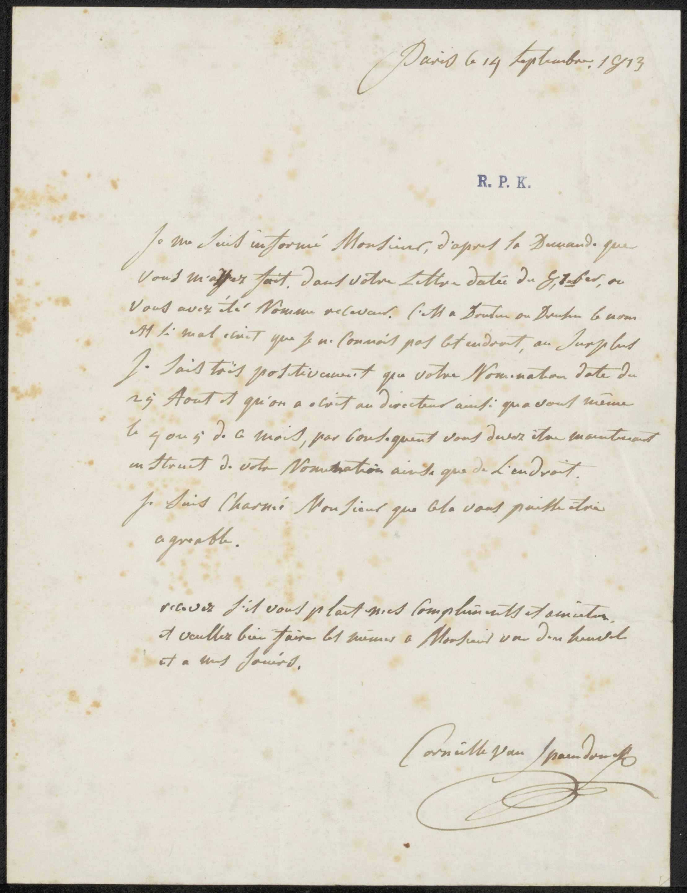 Brief aan P. Collard