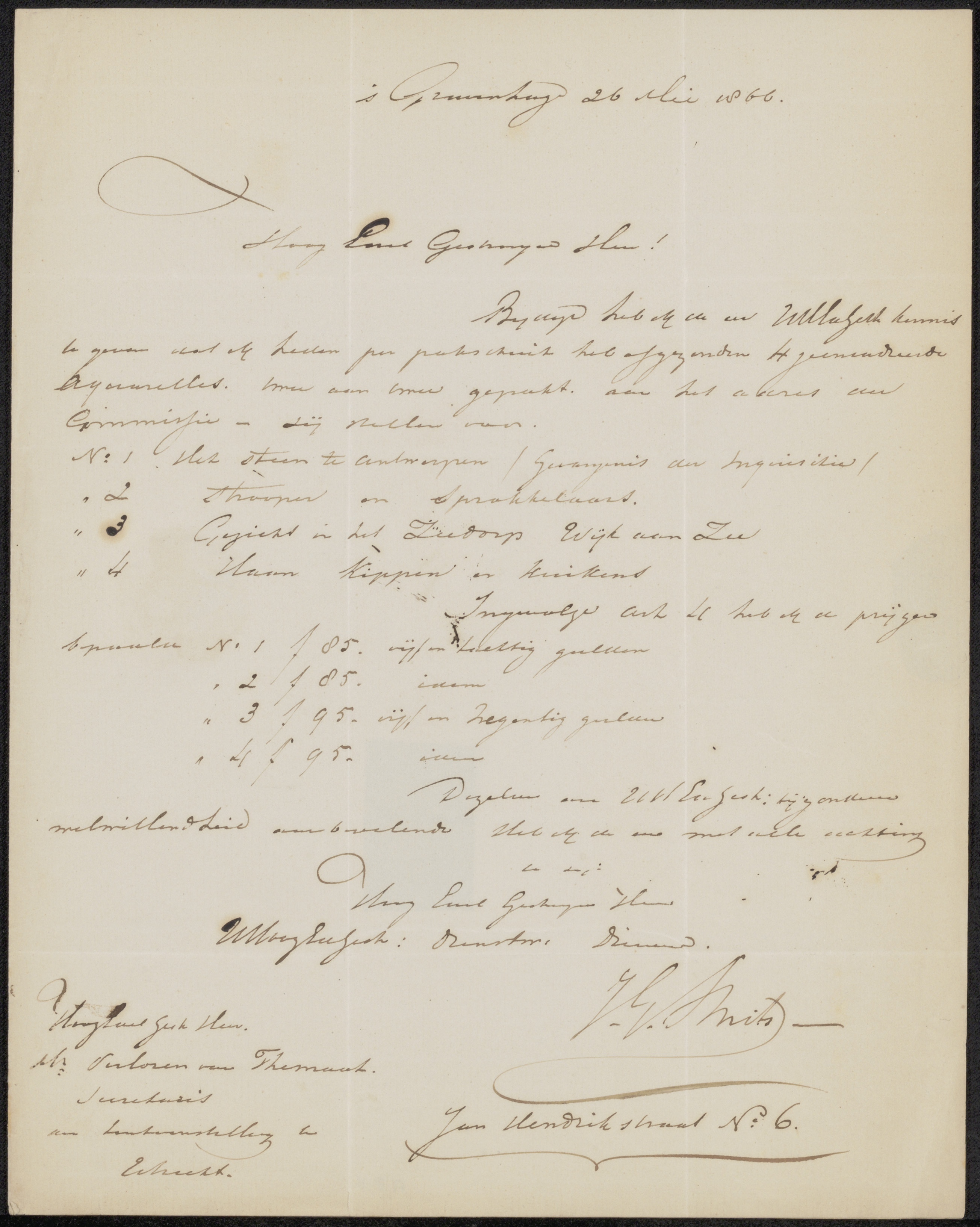 Brief aan Adrianus Wilhelmus Nieuwenhuyzen