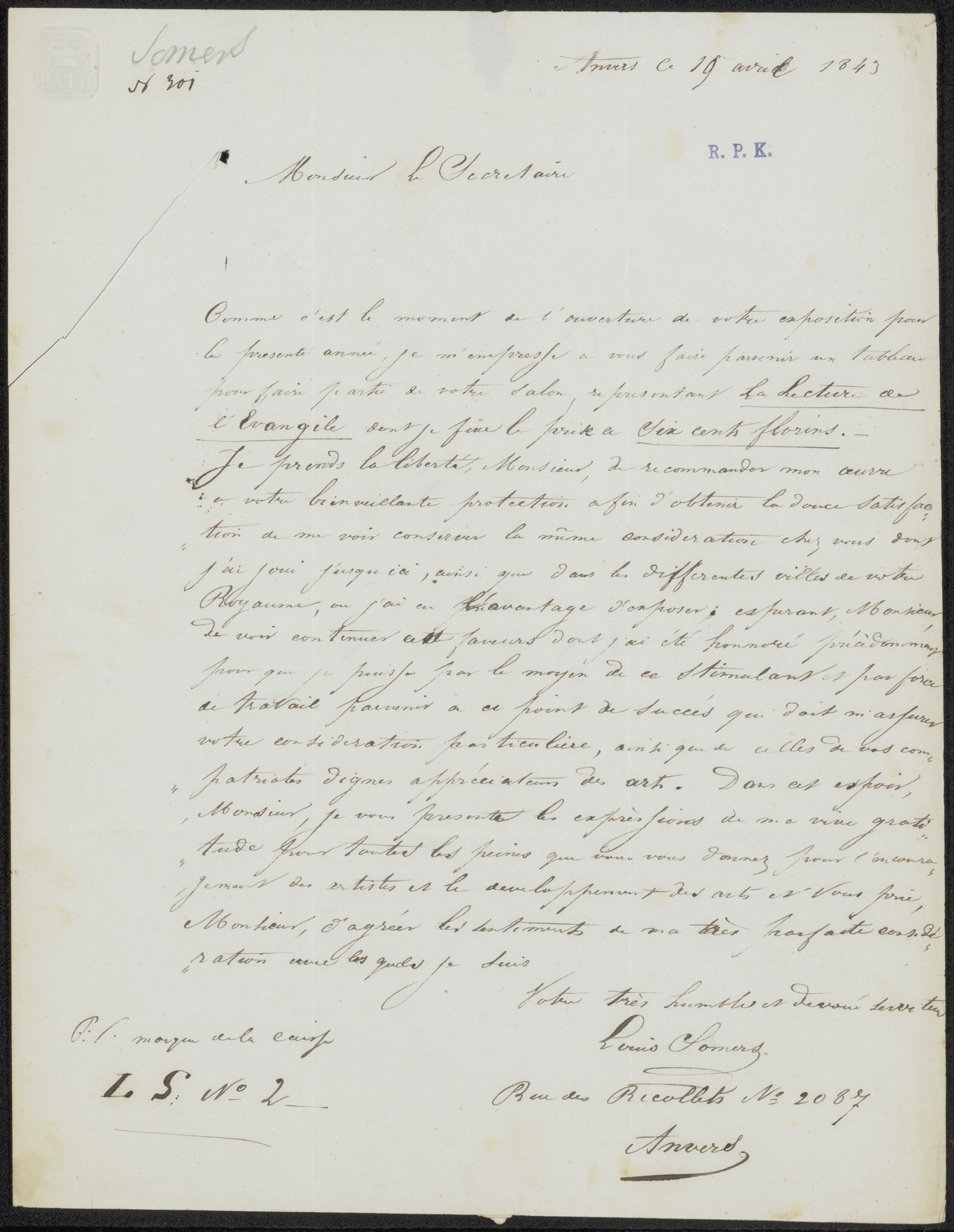 Brief aan Pieter Verloren van Themaat, secretaris va...