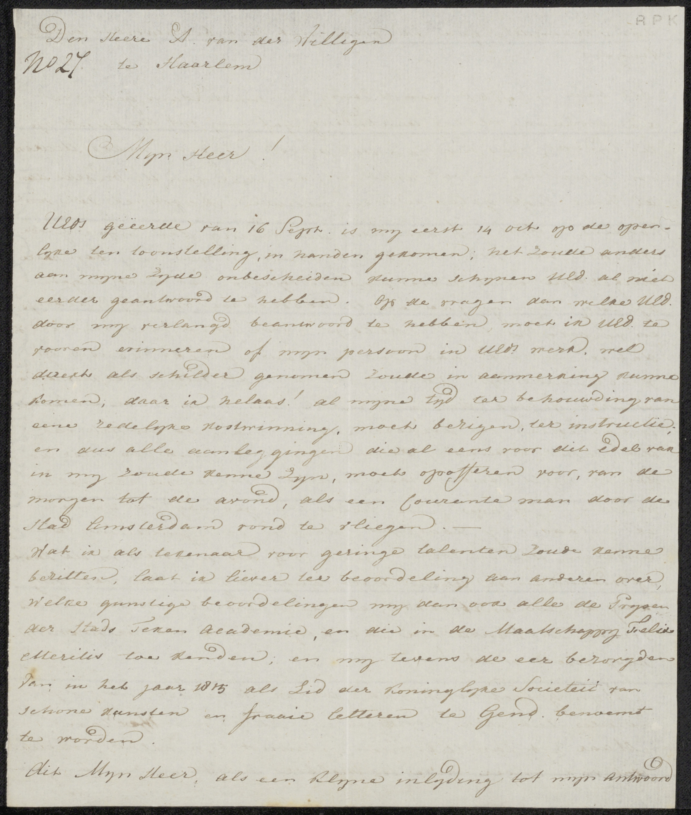 Brief aan Adriaan van der Willigen