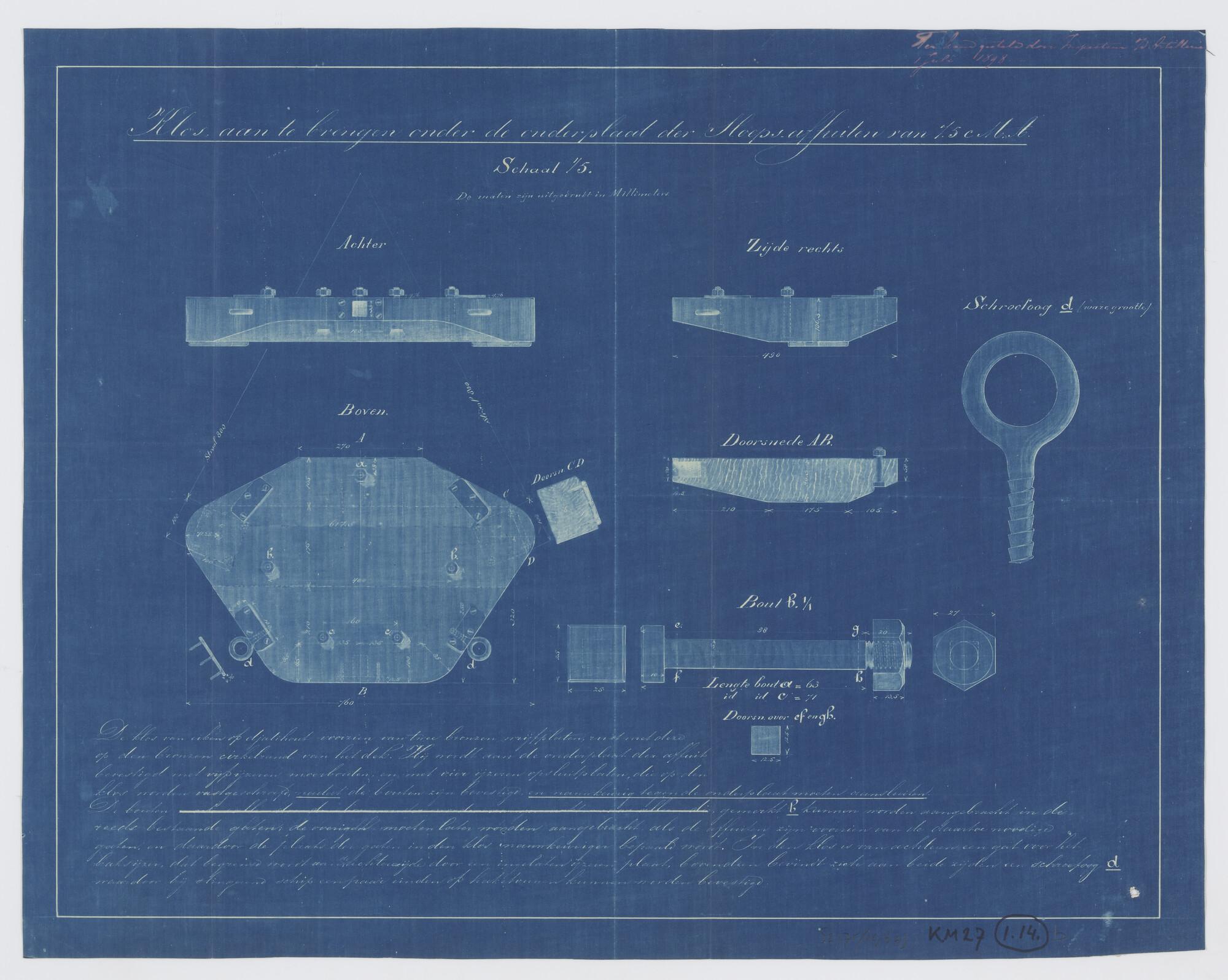 Klos onder sloepsaffuiten van Zr.Ms. 'Argus'