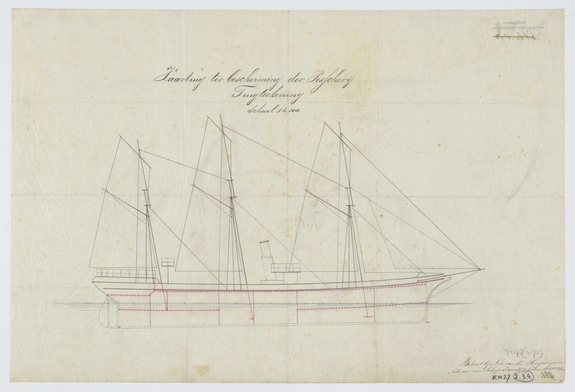 Tuigtekening (zeilplan) van Zr.Ms. 'Dolfijn'