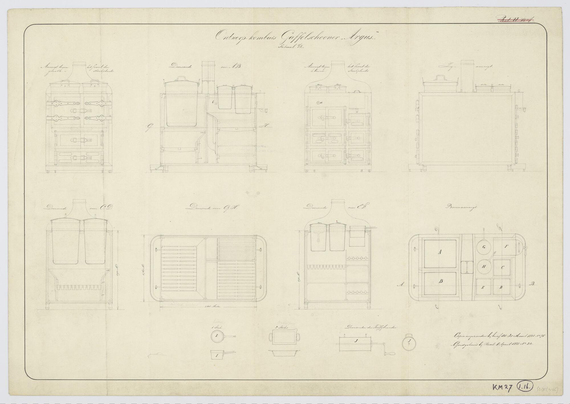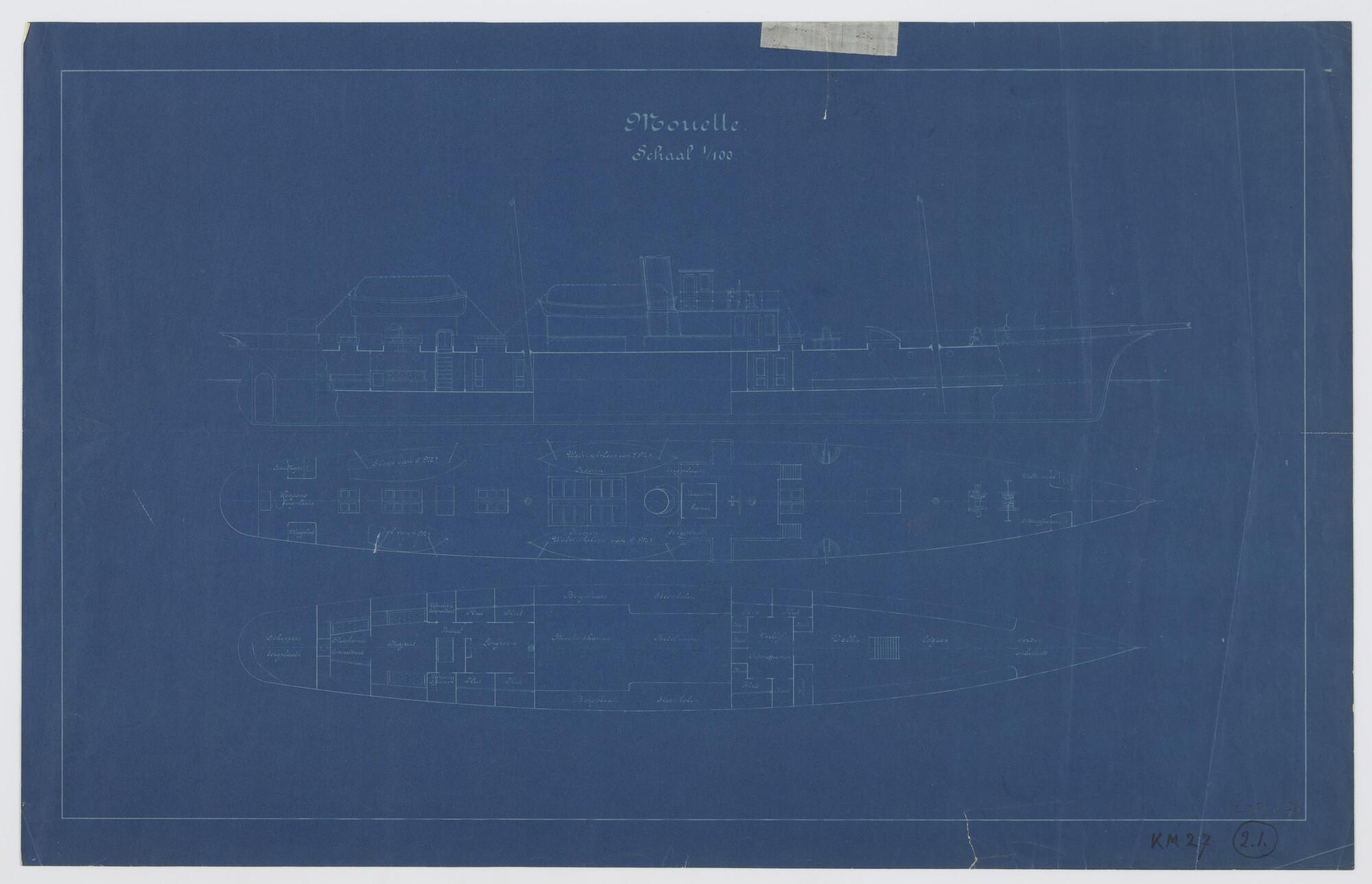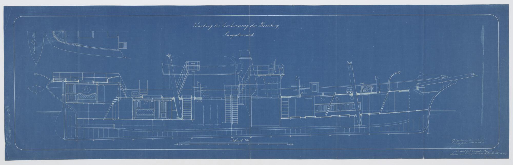 Langsdoorsnede en indelingstekeningen van het stooms...