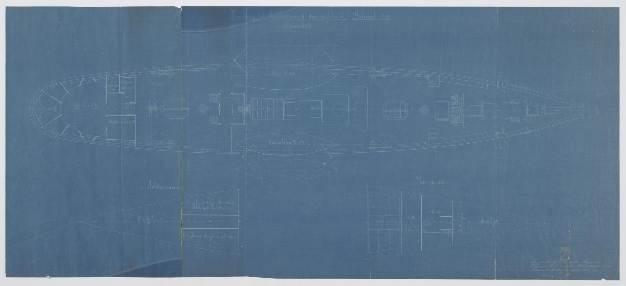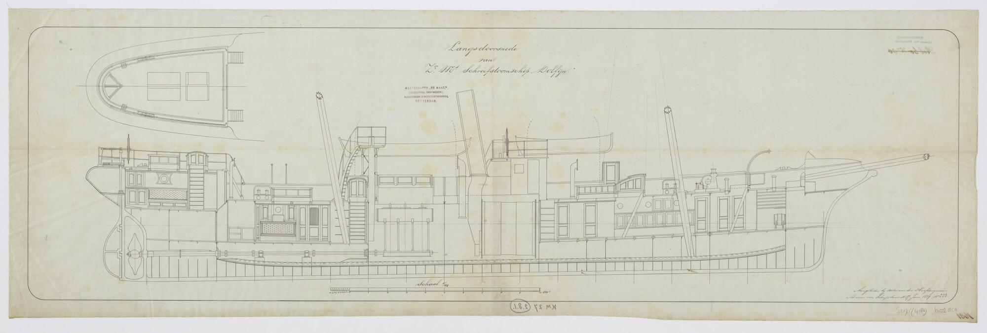 Langsdoorsnede en [ged.] bovenaanzicht van Zr.Ms. 'D...