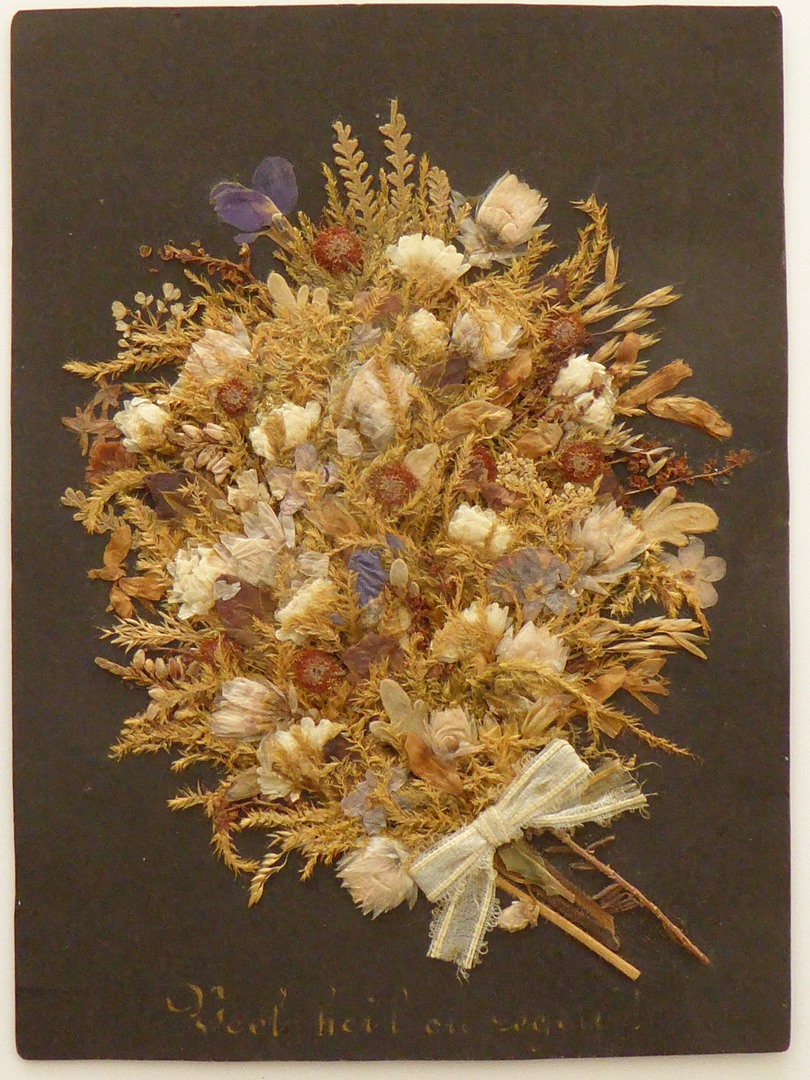 Nieuwjaarswens met plakwerk van boeket gedroogde blo...