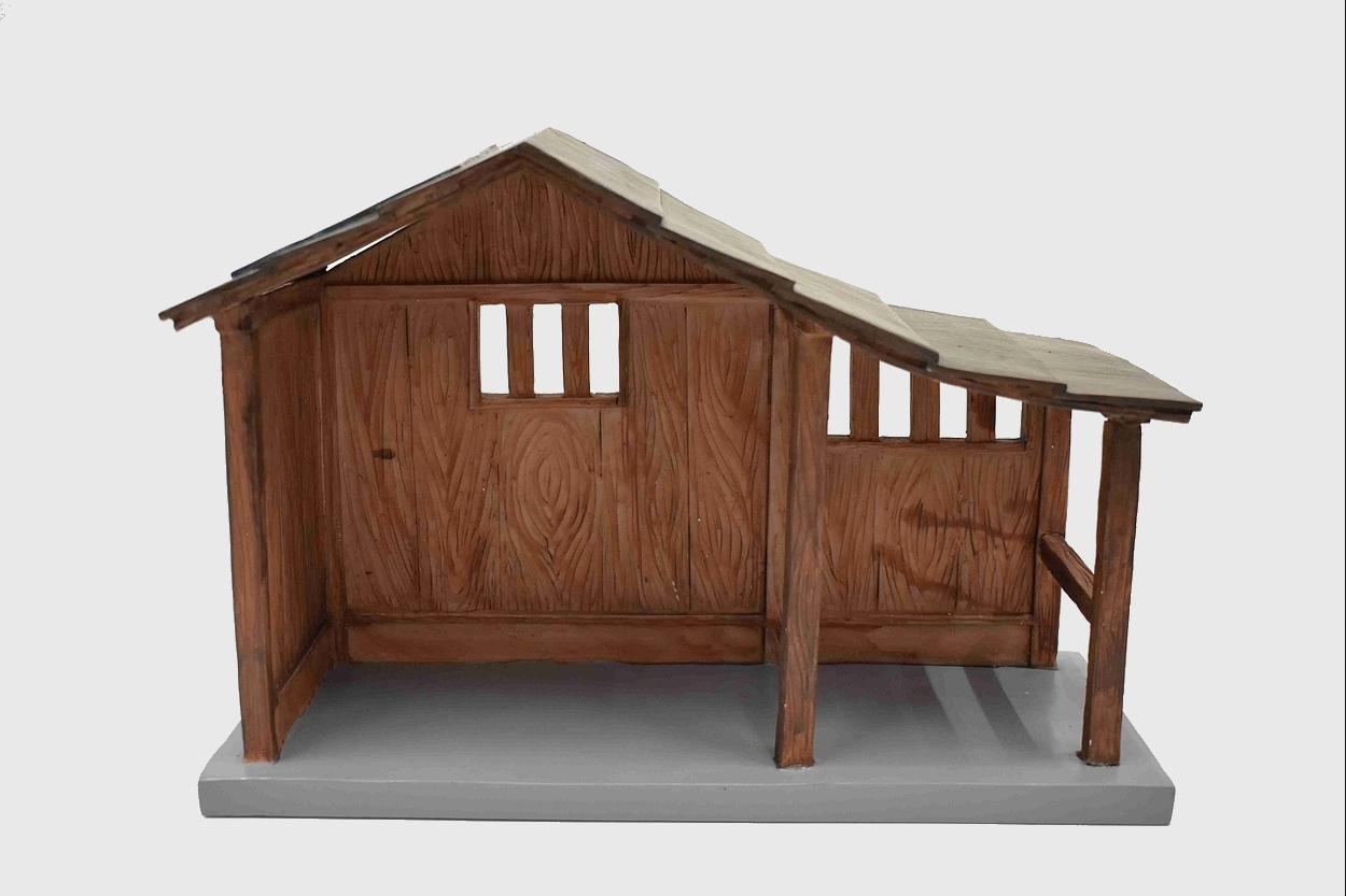 Hipster kerstgroep: kerststal met zonnepanelen op he...