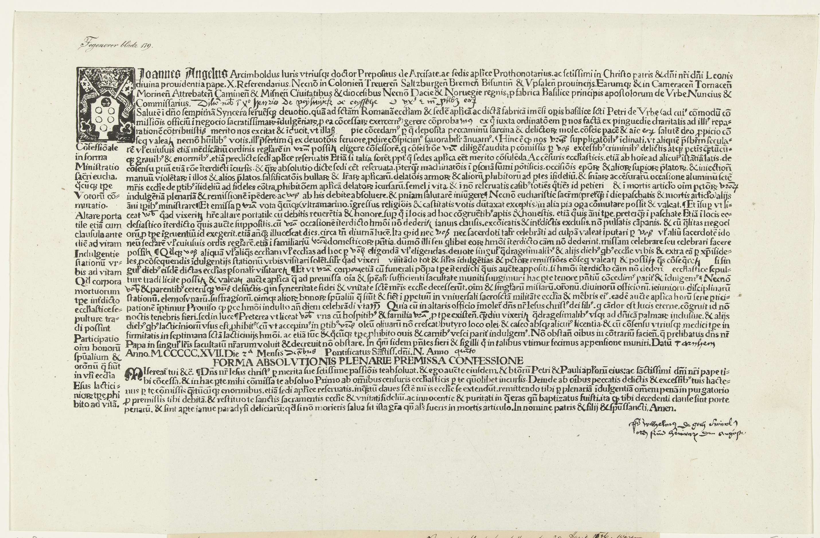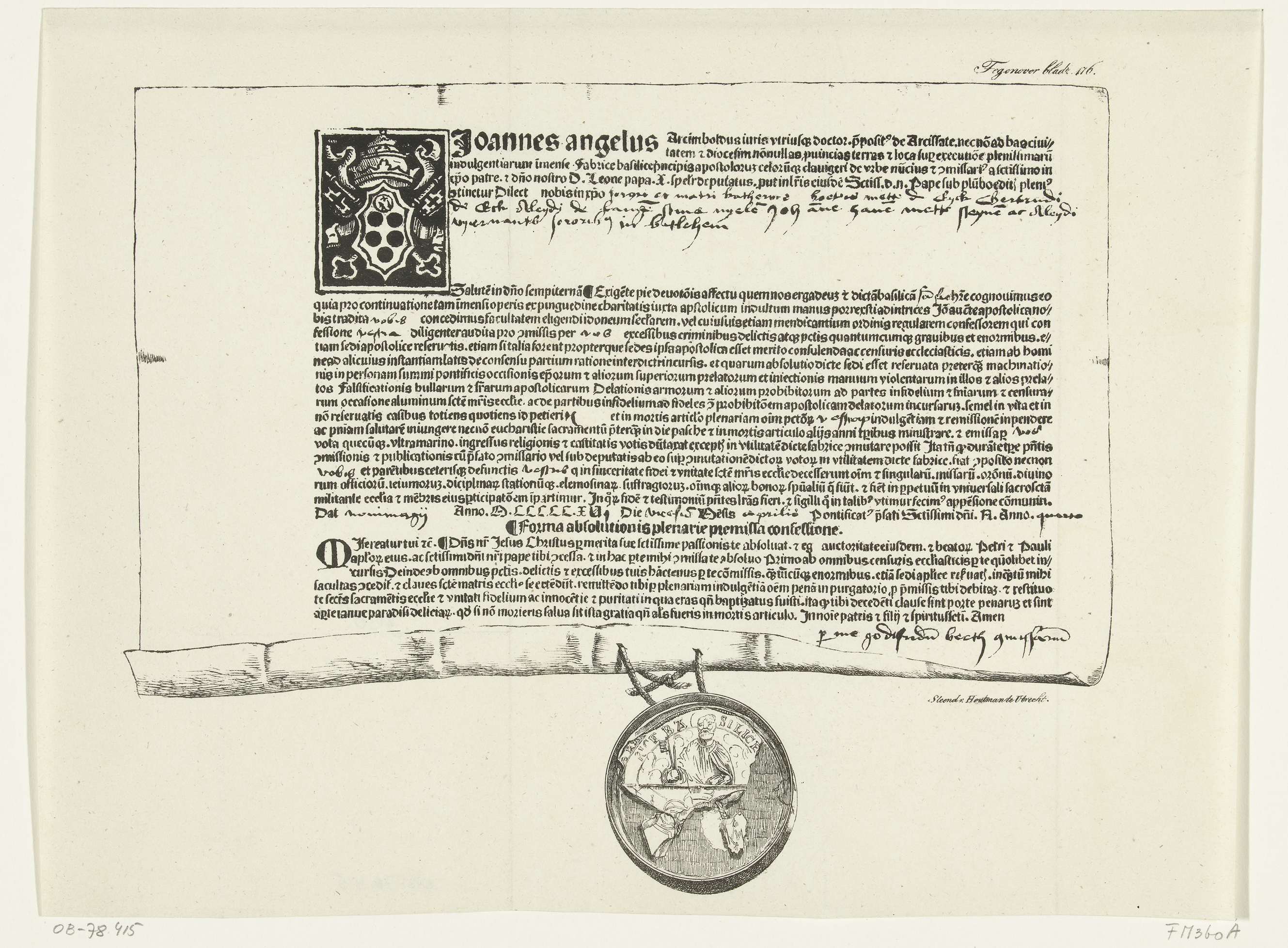 Aflaatbrief gegeven door Joannes Angelus Arcimboldus...