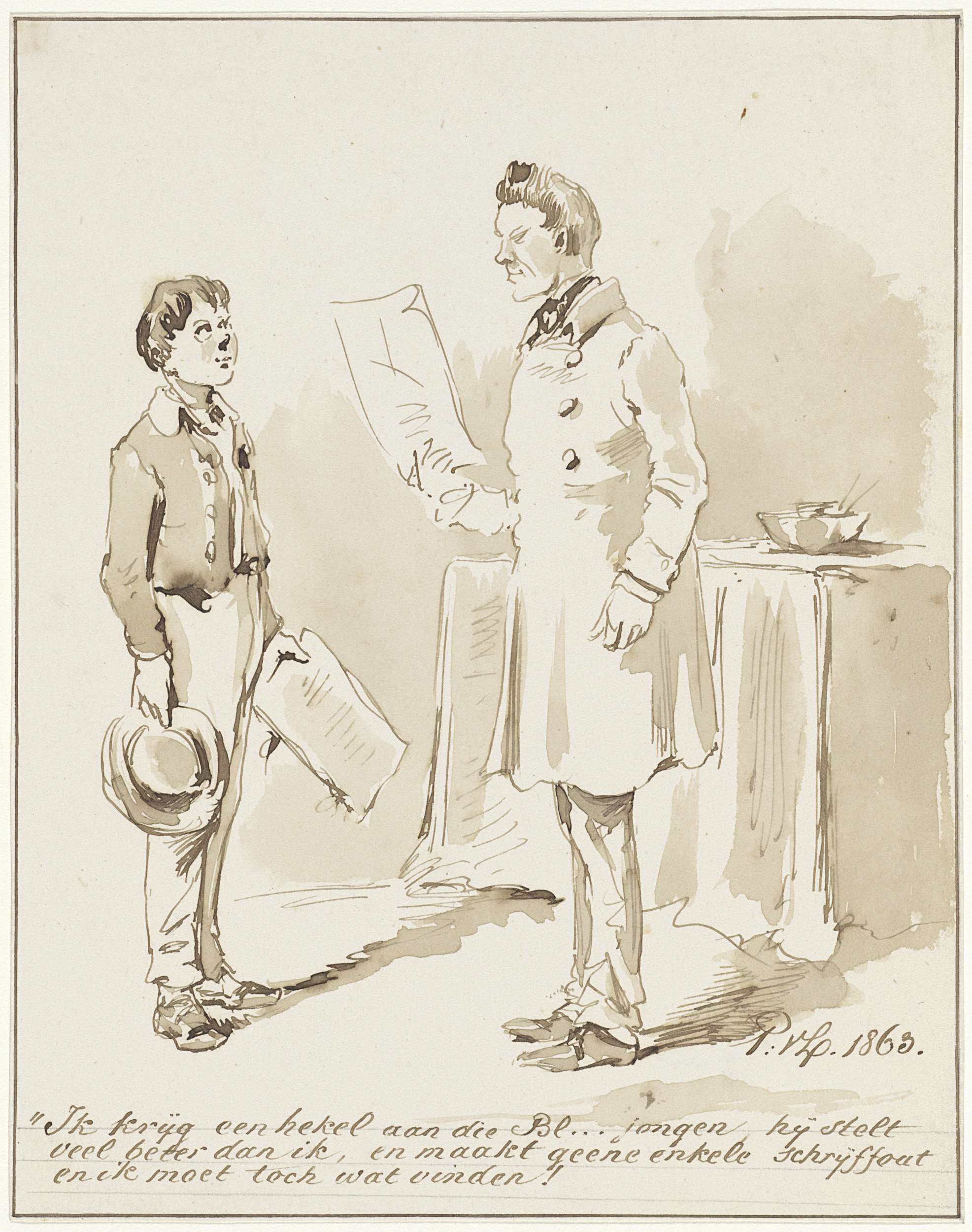 Boerenjongen wijzend met de rechterhand