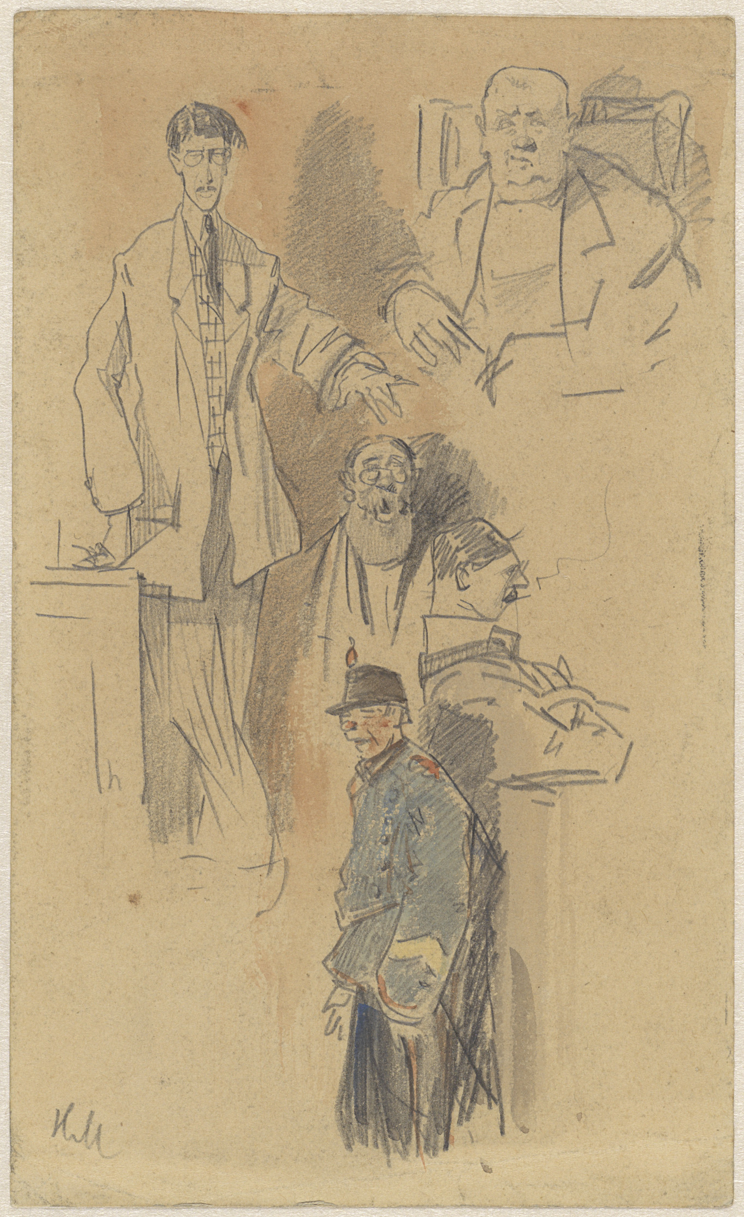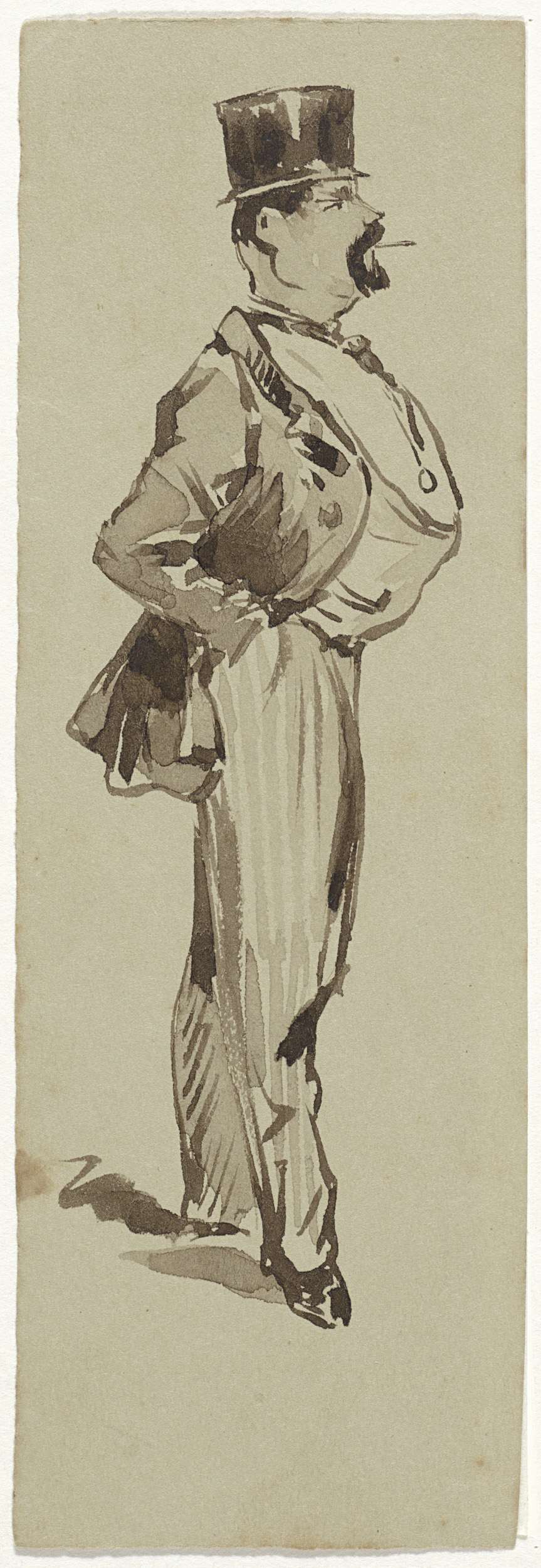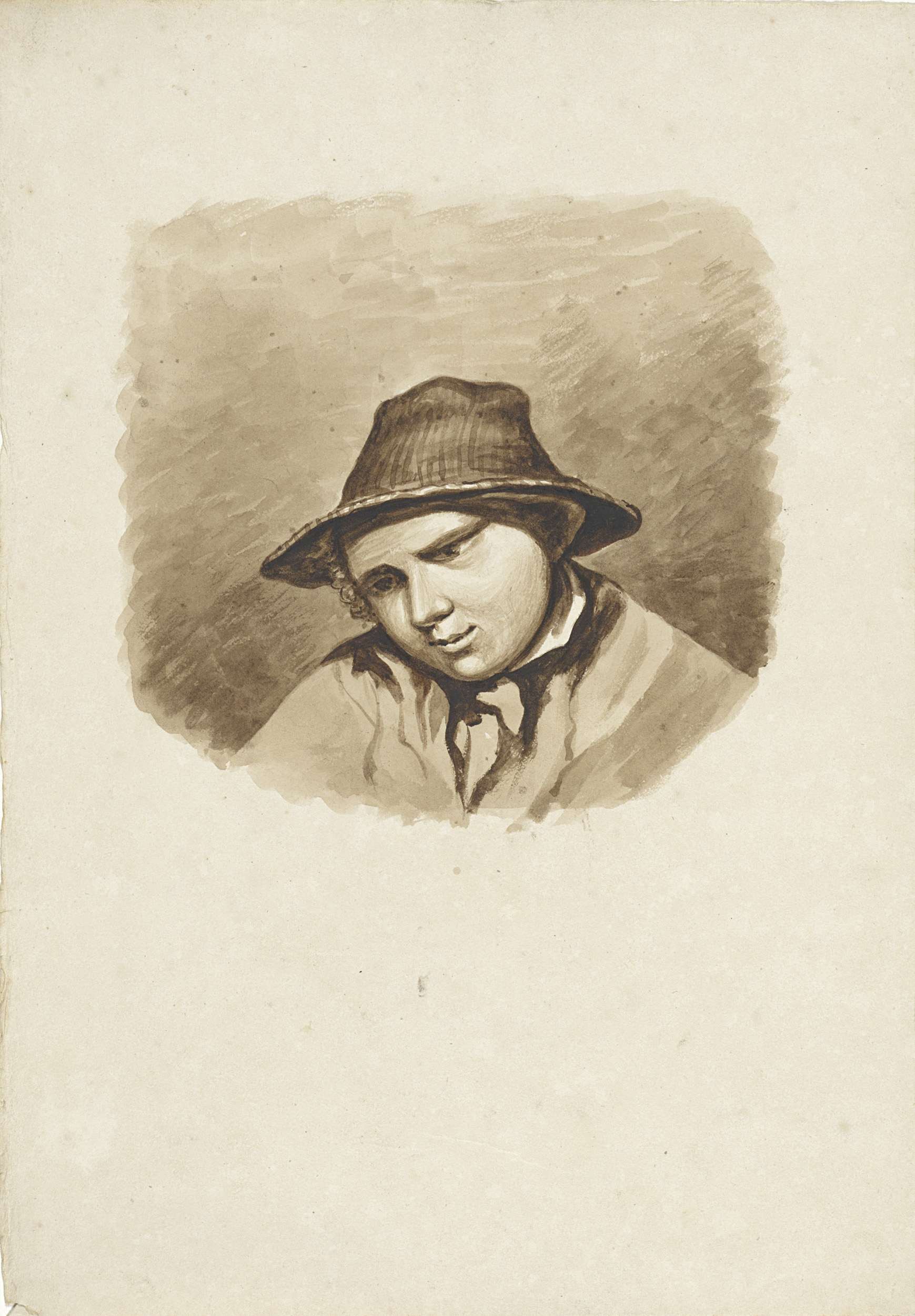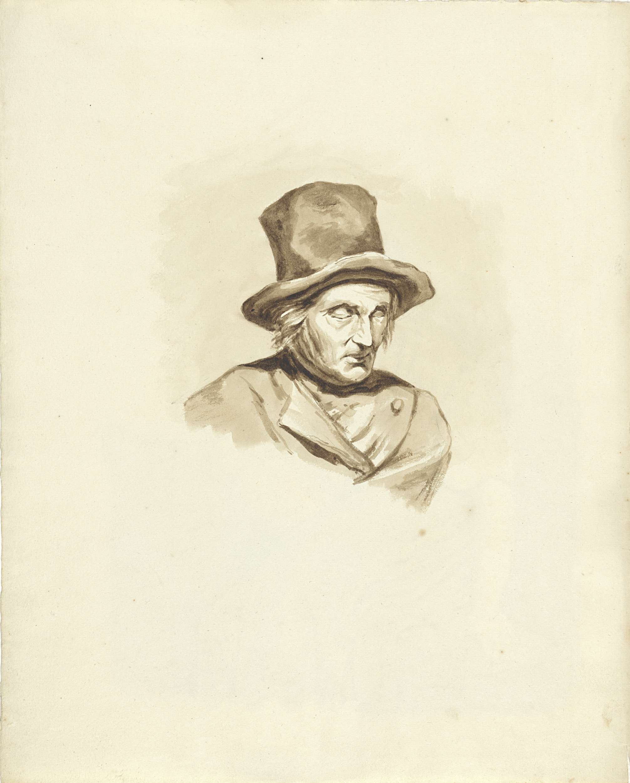 Buste van een oude man met hoge hoed