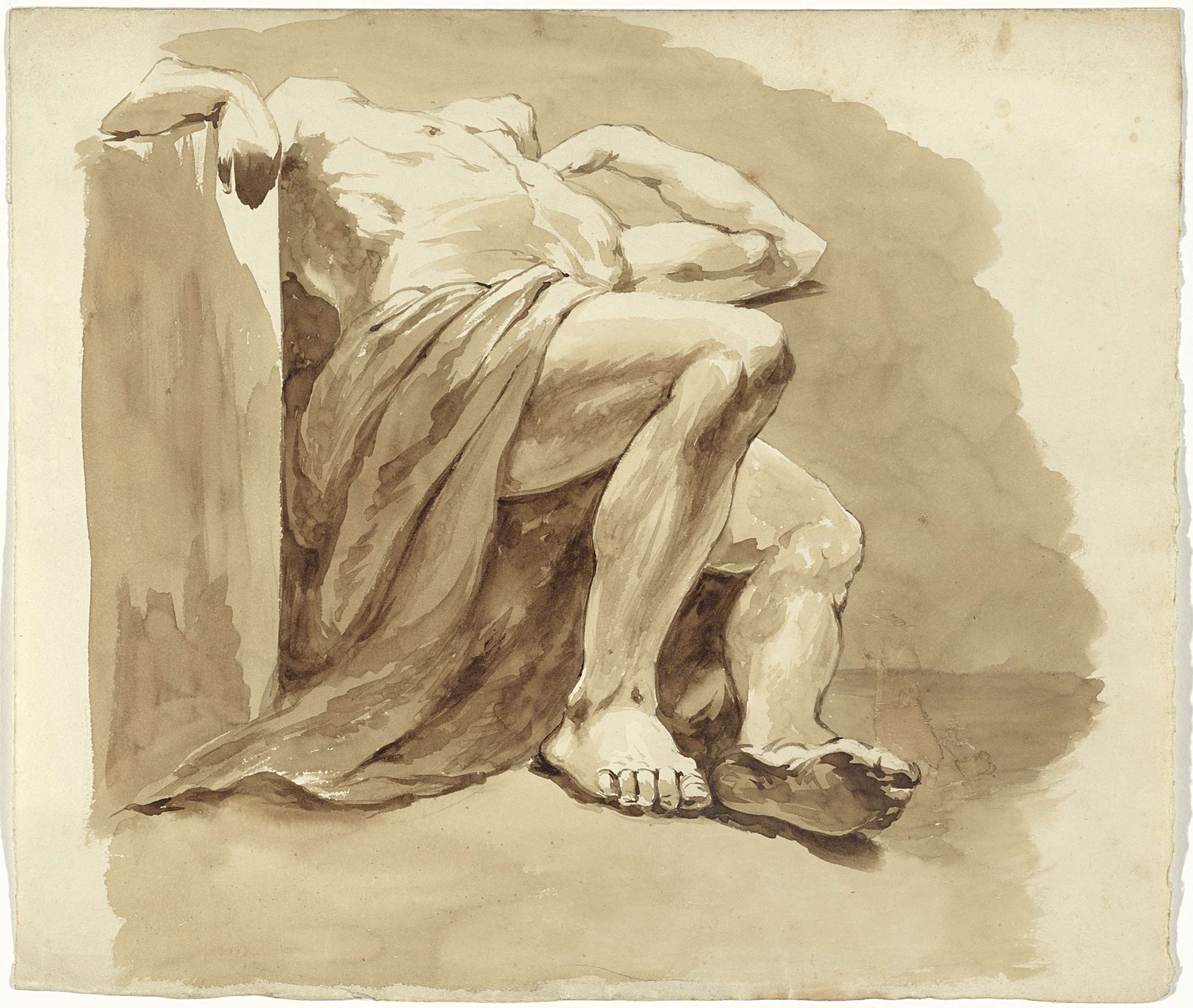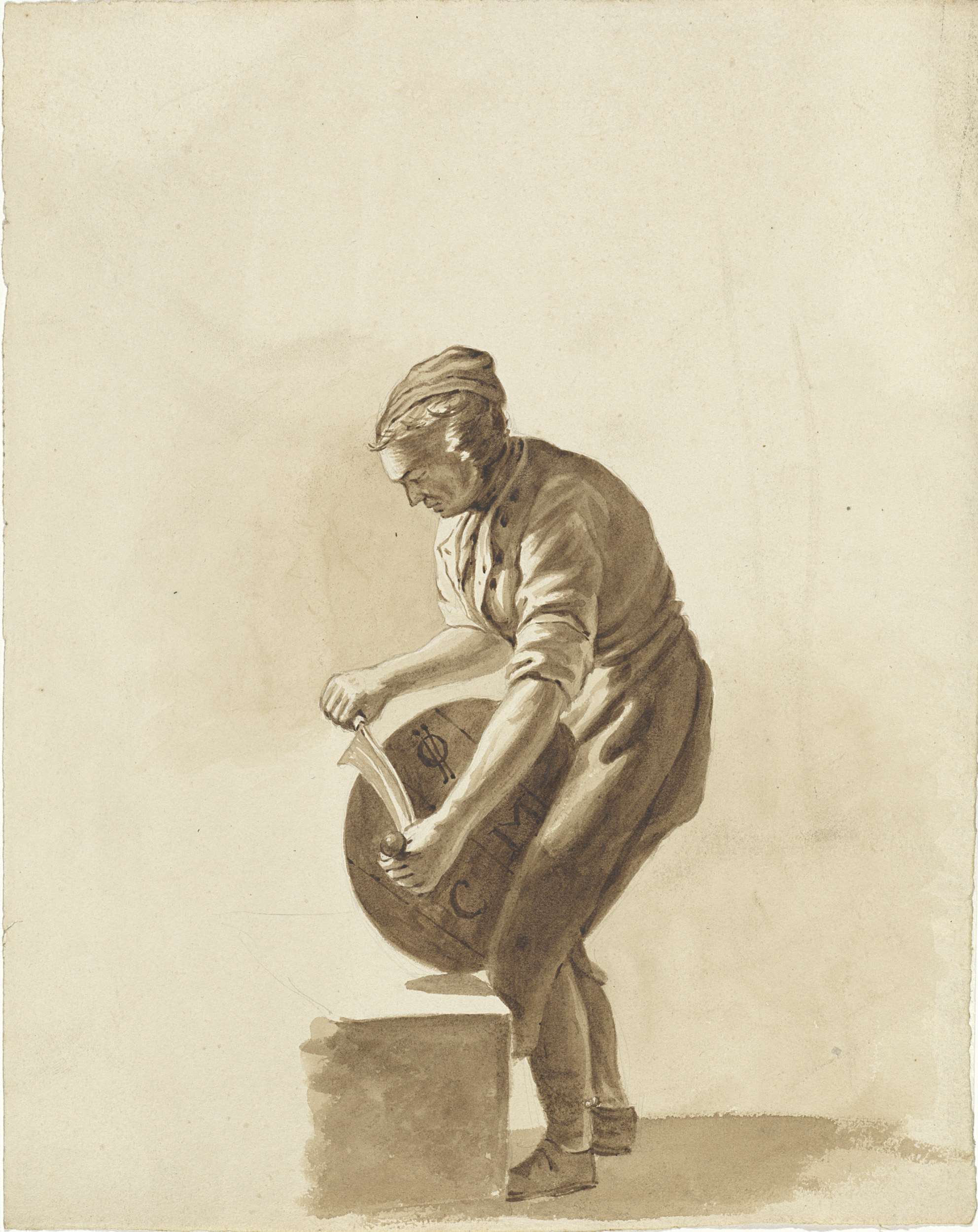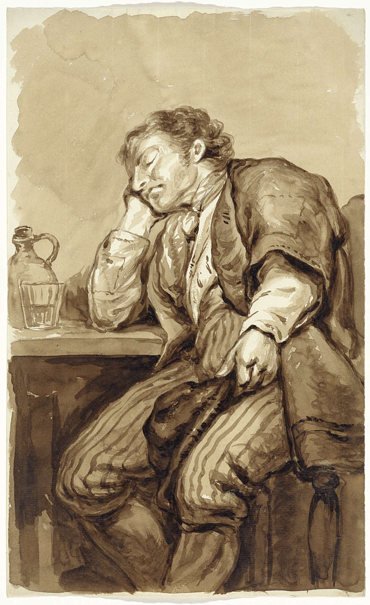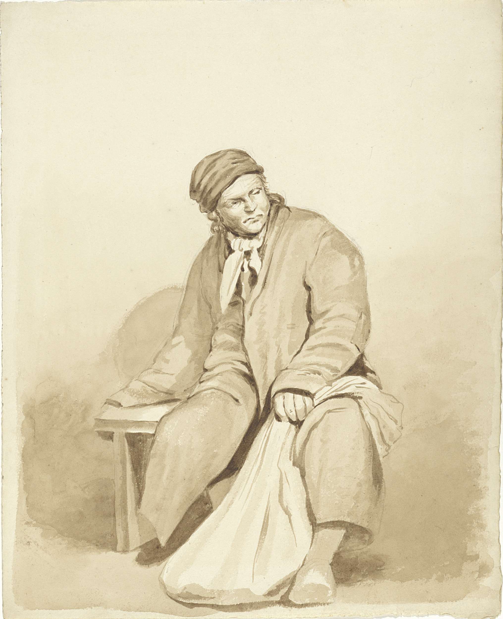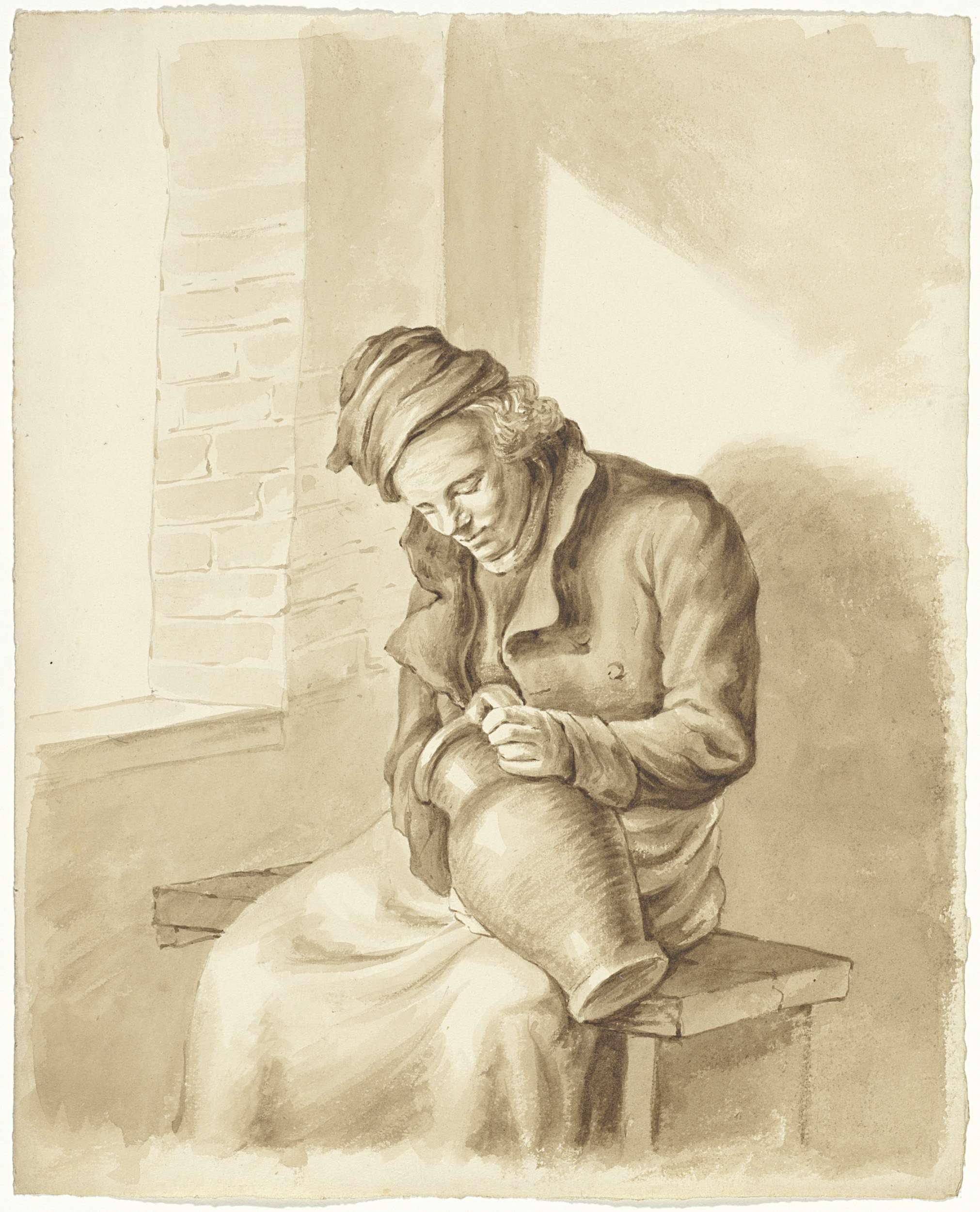 Zittend man met een kruik